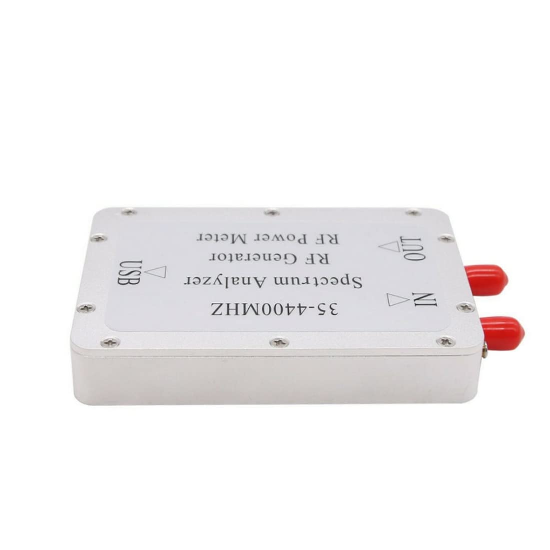 Description The of the USB interface spectrum analyzer is made of aluminum alloy and has a long service life. This is a high sensitivity spectrum analyzer for 35M~4.4G signals. The spectrum analyzer integrates the frequency accumulation (calibration) function. Features USB Spectrum Analyzer -Color: As shown. -Material: Aluminum alloy. -Size: 8.8x5.9x1.3 cm/3.46x2.32x0.51 inch. Specifications: generator and spectrum analyzer frequency range: 35MHz-4.4GHz (35-4400MHz) Minimum step:1K Output power(reference): 0dBm@1GHz Frequency accuracy (calibration): -0.1k@1GHz Spectrum analyzer max linear input power: -10dBm Spectrum analyzer not damage input power: 10dBm MiniUSB power: 5V/0.3A Interface: USB, SMA@50Ω NOTE 1. The color in the photo may vary slightly due to lighting and different screen. 2. Please allow 1-3 cm deviation due to manual measurement. Package Including 1 * Spectrum Analyzer1 * Power Cable