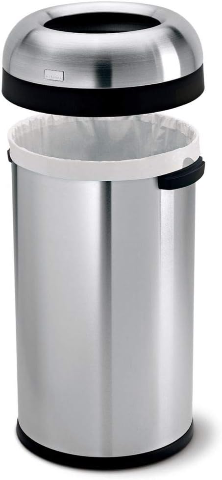 simplehuman 115 Liter / 30 Gallon Bullet Open Top Trash Can Commercial Grade, Heavy Gauge Brushed Stainless Steelsimplehuman's largest bullet open can has an extra-large opening that makes it easy to scrape food off trays or toss in large items like pizza boxes. The heavy-gauge stainless steel construction, lift-off lid and extra-large capacity make it an ideal choice for high-traffic commercial spaces such as hotel lobbies, restaurants and commissaries.simplehuman 50 Liter / 13.2 Gallon Slim Open Top Trash Can, Commercial Grade Heavy Gauge Brushed Stainless SteelThe simplehuman slim open can has a space-efficient shape designed for tight spaces, while its open lid makes it easy to toss in trash on the go. The heavy-gauge stainless steel construction, lift-off lid, and large capacity make it an ideal choice for busy, high-traffic areas such as restaurants, coffee shops and hotel lobbies.
