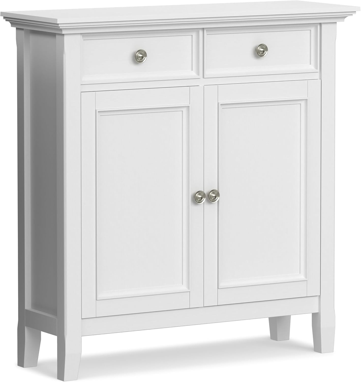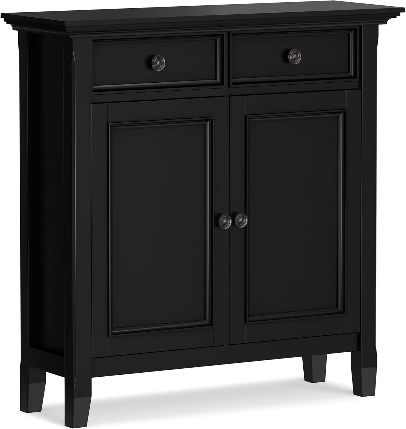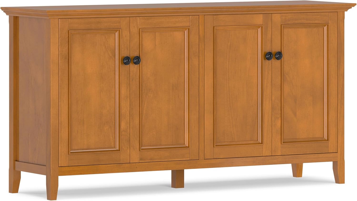 Bring organization and style to your home with the Amherst Low Storage Cabinet. Crafted from solid pine wood, this versatile piece offers practical storage for entryways, living rooms, or dining areas. Two panel doors open to reveal adjustable shelves, perfect for storing books, linens, or dinnerware. The transitional design features clean lines and recessed door panels, blending seamlessly with various decor styles. Measuring 32"W x 31"H x 14"D, this compact cabinet maximizes space while adding warmth and functionality to any room. Handcrafted with sustainable materials and finished with a low-VOC lacquer, the Amherst cabinet combines durability, style, and eco-conscious craftsmanship.