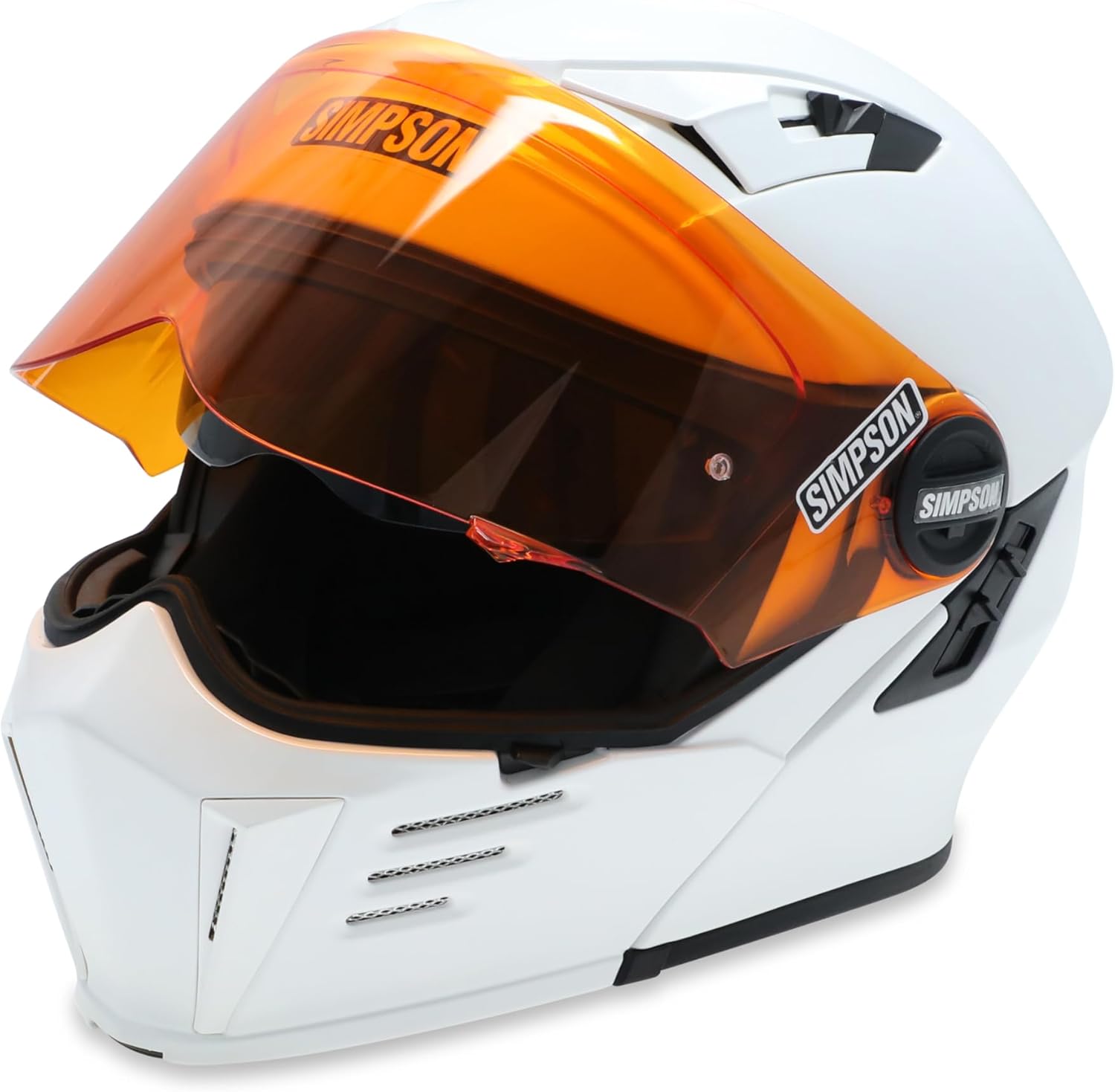 Medium. Modular function and convenience meets Simpson style and attitude. One hand modular function, communication system ready, Pinlock system compatible, and internal sun shield are highlights of the new Mod Bandit. Ready to ride across town or around the world, the Mod Bandit offers the function and style you are looking for. Helmet ships with one clear face shield installed, additional face shields may be purchased separately.