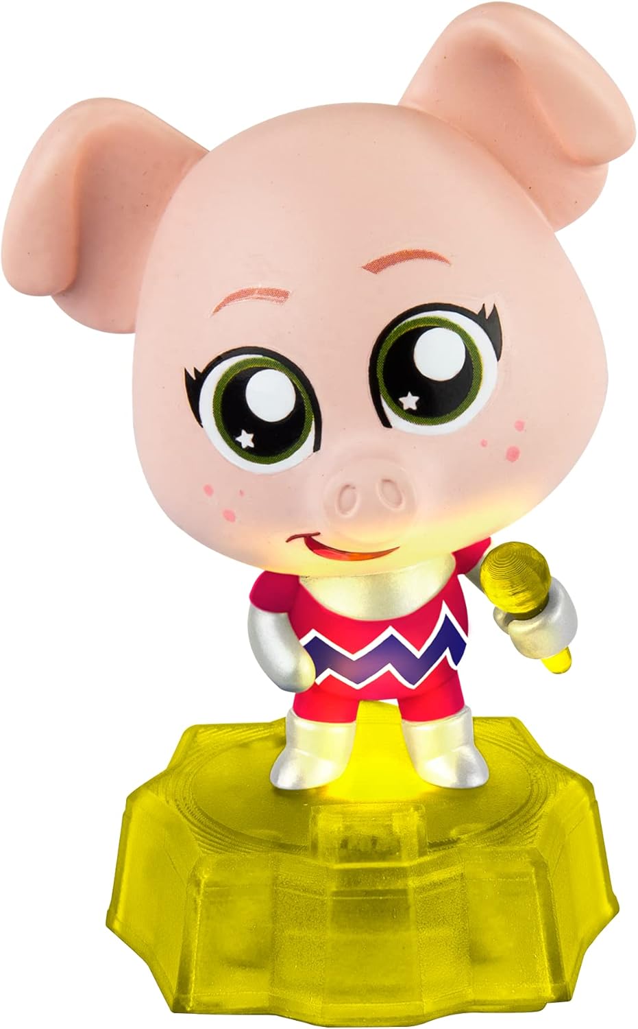 Your favorite characters are back and ready for their most dazzling stage extravaganza yetin Sing 2! These spectacular Stage Sparkles collectible toys are each three inches tall and perfect for collecting. Each features a look from the Sing 2 movie, but done in kawaii style for extra cuteness. Each Lil’ Singer comes with a special stage that spotlights your toy when you push on their stage. The stages and microphones can also be swapped between characters. This toy set includes Gunter, Ash, Rosita, and Johnny so you can put on an all-star show.