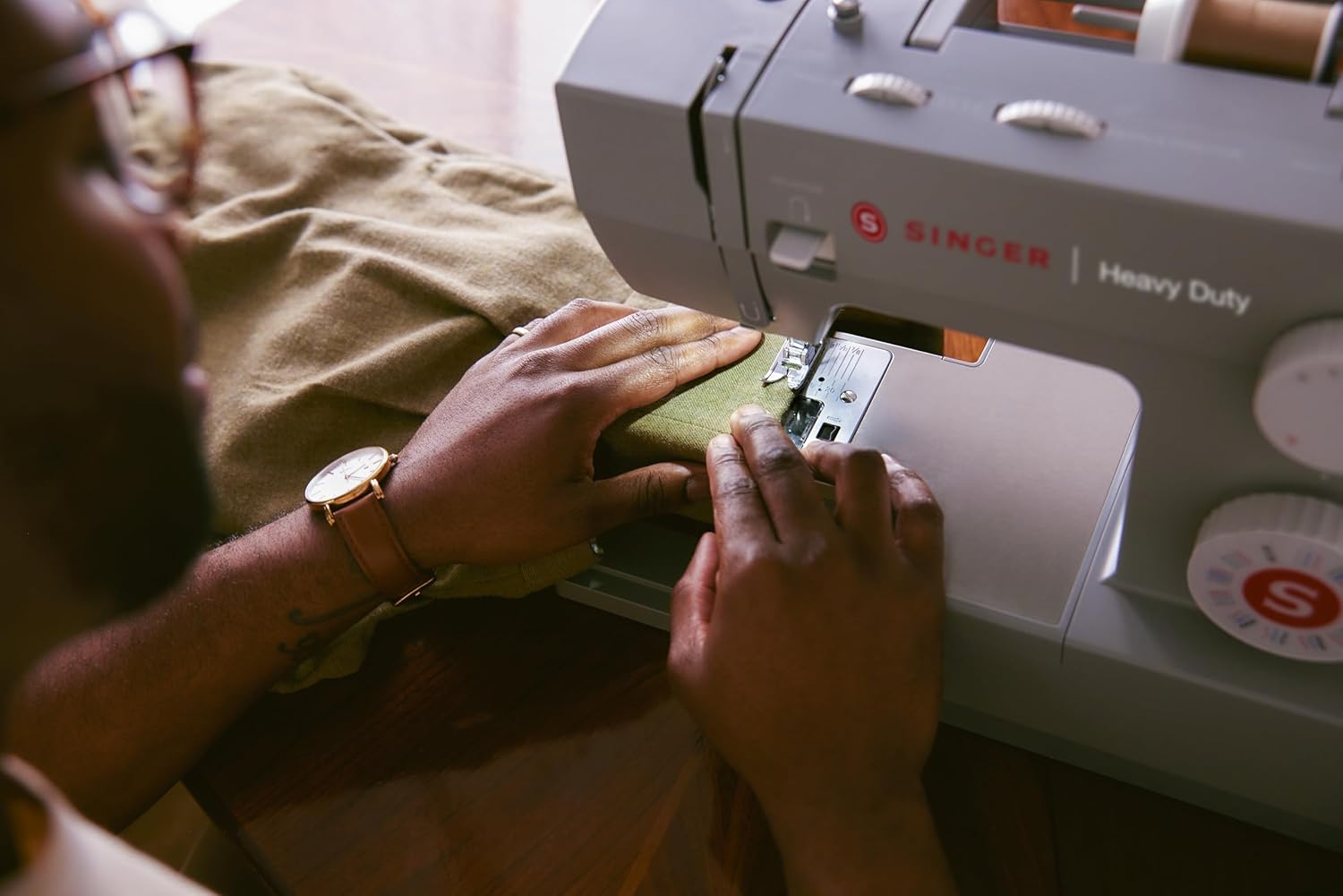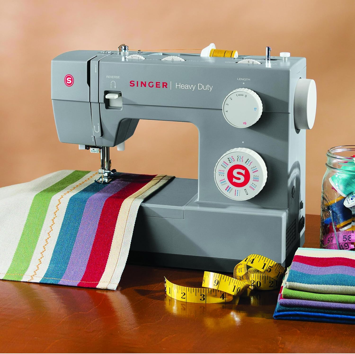 The Heavy Duty 4432 sewing machine is designed with your heavy duty projects in mind, from denim to canvas. Thanks to the machine's powerful motor, you have extra high sewing speed to save you time. With adjustable presser foot pressure, you can also sew very lightweight sheers, and the stainless steel bedplate allows fabrics to glide over the machine with ease. Create original costumes, sew personalized fashions or transform your home with new decorator pillows and curtains. Among the 110 stitch applications is a one-step buttonhole, giving you consistent results every time for projects you'll be proud to say you made yourself. SINGER Sewing Machine Presser Foot Kit allows you to take on an even larger variety of sewing projects, with the included Darning/Freehand Embroidery Foot, Blind-Hem Foot, Cording Foot, Even-Feed/Walking Foot, Gathering Foot, Narrow-Rolled Hemming Foot, Overcasting Foot, Special-Purpose Foot, Straight-Stitch Foot, and Twin Needle--all in a durable, custom-fit SINGER plastic container that includes a padded removable insert.