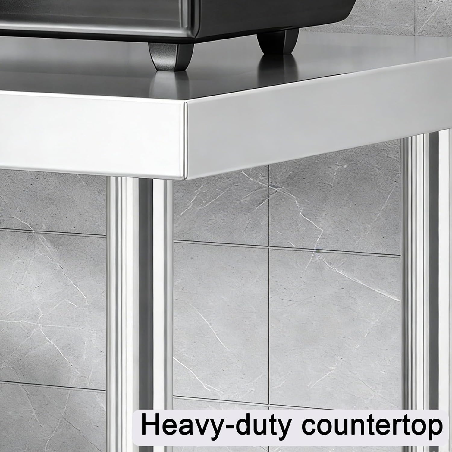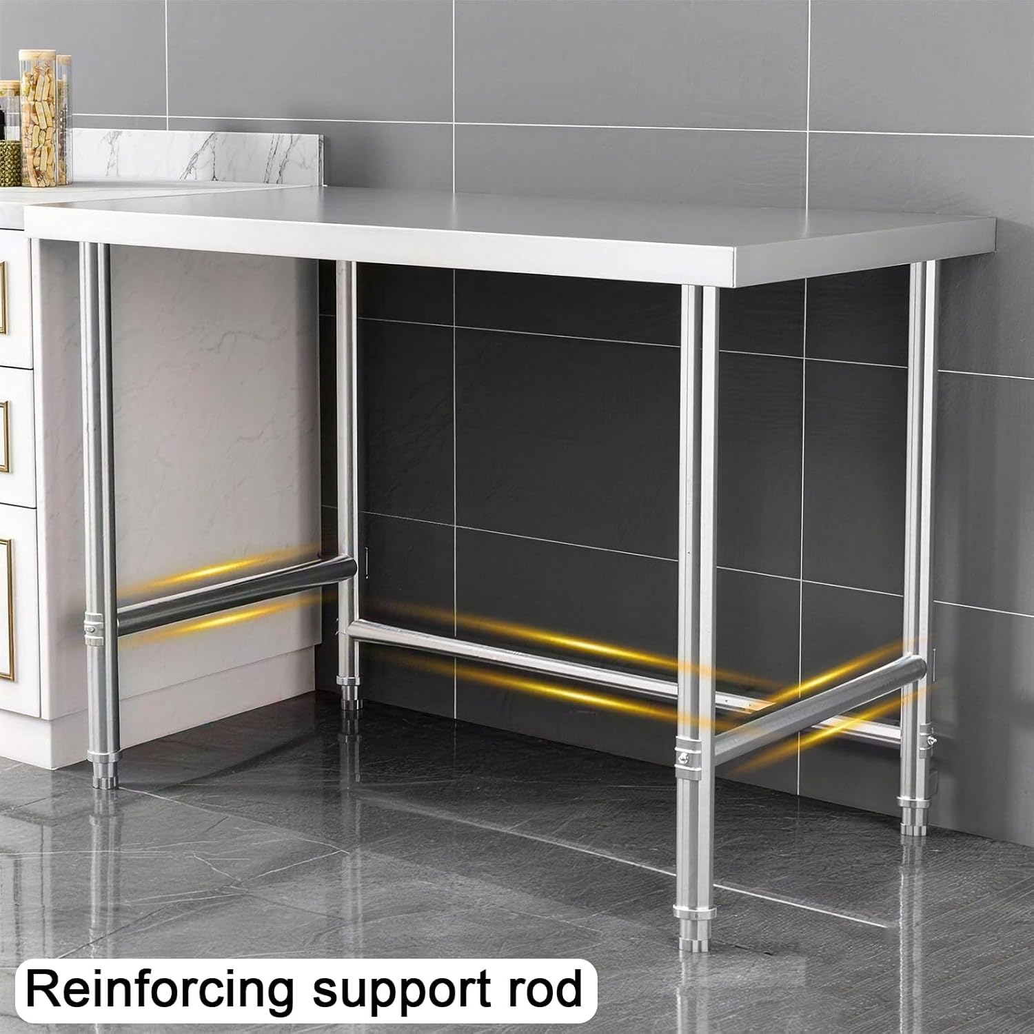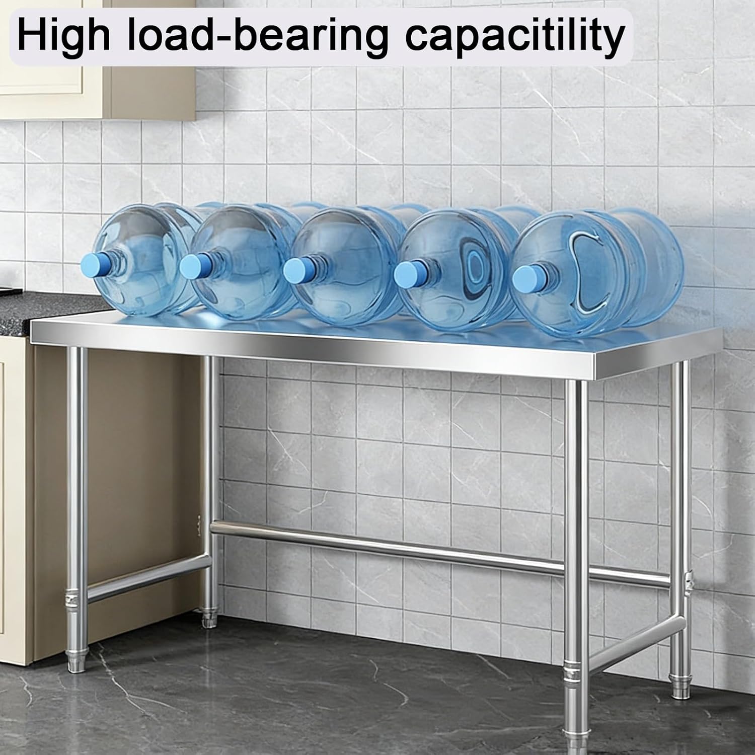 Open shelves, placing all kinds of pots and pans, gas cans in the kitchen have a place to store, no need to repeat the opening and closing of the cabinet door, practical and convenientOur metal tables are suitable for sewing, laundry, crafts, garage use, architectural planningProduct Name: Folding Work TableMaterial: stainless steelSize:50*50*80centimeters(19.7*19.7*31.5") 80*50*80centimeters(31.5*19.7*31.5") 100*50*80centimeters(39.4*19.7*31.5") 120*50*80centimeters(47.2*19.7*31.5") Product List: Workbench*1 (other items in the picture are not included)Attention Tips.The product is measured manually, there may be 1-3centimeters error, please understandDue to different shooting angles and monitors, the pictures may have a little color difference, please understandDue to stainless steel products, there may be slight scratches, please understand