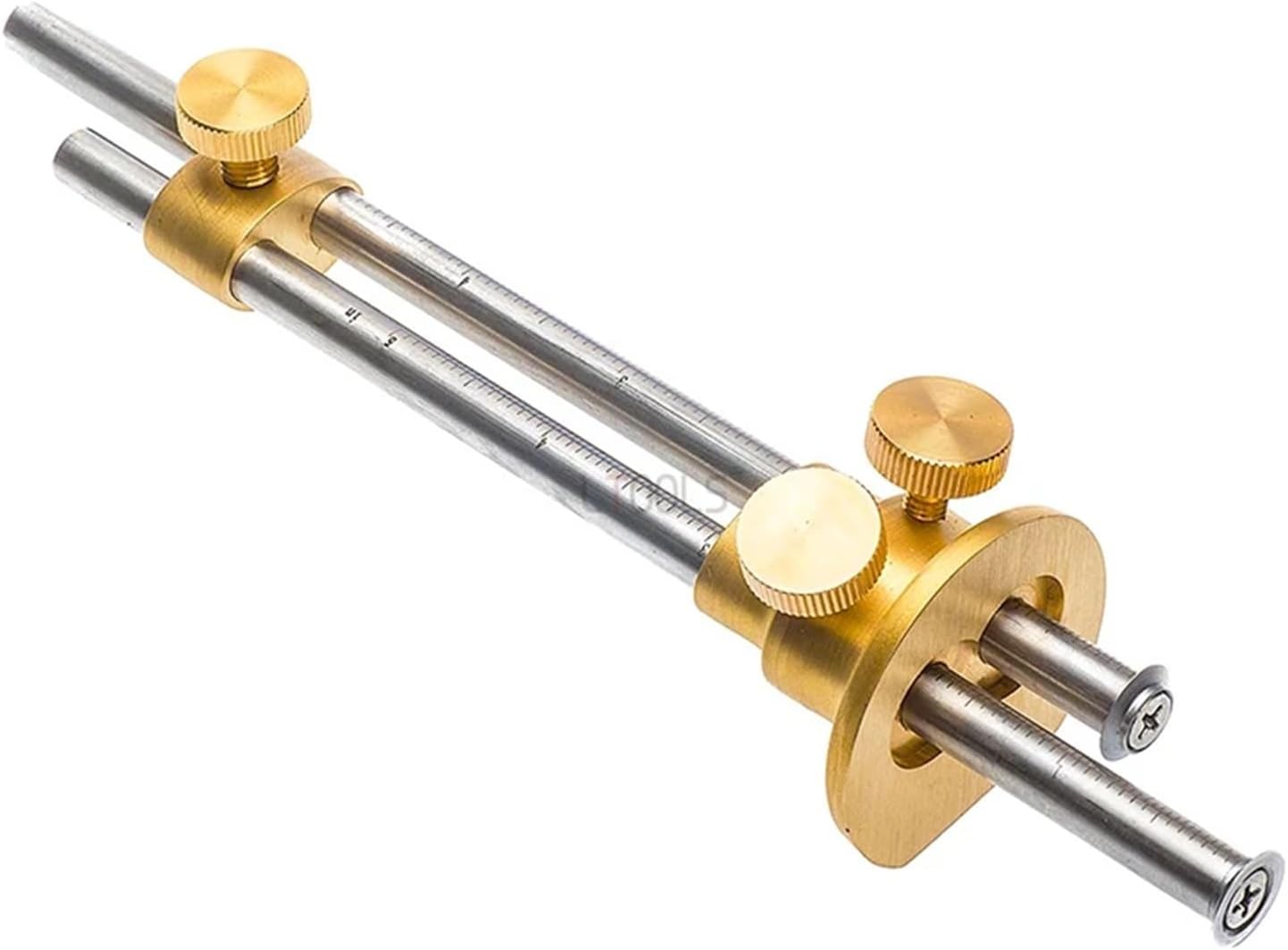 Hand ToolsSingle/Double Rod Marking-gauge Wheel Marking Gauge High Precision Woodworking Marking Scriber Kit Wood Marking Tool CarpenterSingle line gauge:Material: Main body - copper, mahogany, scale rod - stainless steel, blade - high-speed steelScale: Metric 120MM, English 5 inchesProduct size: total length approximately 185CM, blade diameter approximately 12MMScale rod diameter: 8MMCopper support body diameter: 44MMNet weight of product: approximately 240 gramsDouble rod scoring gaugeMaterial: main body - copper, scale rod - stainless steel, blade - high-speed steelScale: Metric 120MM, English 5 inchesProduct size: total length approximately 180CM, blade diameter approximately 12MMProduct weight: approximately 310 grams
