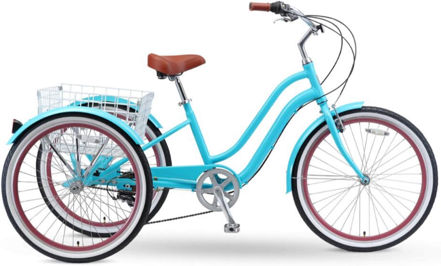 • 7-SPEED DRIVETRAIN WITH HANDBRAKES: Our three wheel bicycles are equipped with a 7-speed external derailleur and front and rear handbrakes for smooth gear transitions and controlled riding across varied terrain