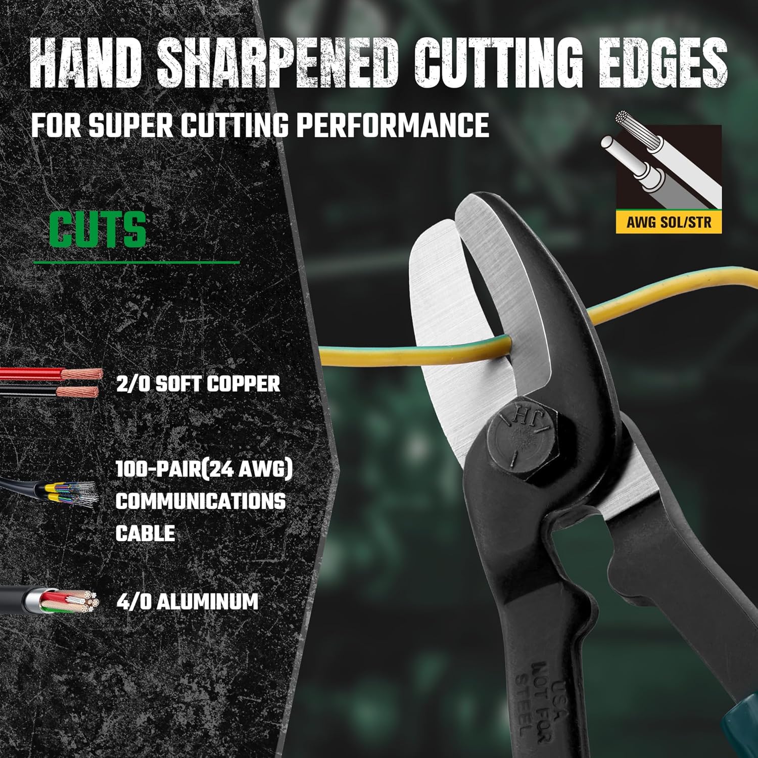 Product Description SK Tools USA 8-Inch Cable Cutters, Heavy Duty Wire Cutter, Cable Cutting Pliers with Padded Handle, High Carbon Steel, for Aluminum, Copper, Wire, and Communications Cable From the Manufacturer Forged battery cable cutter. For use on copper wire only. Capacity 2.0" cable.