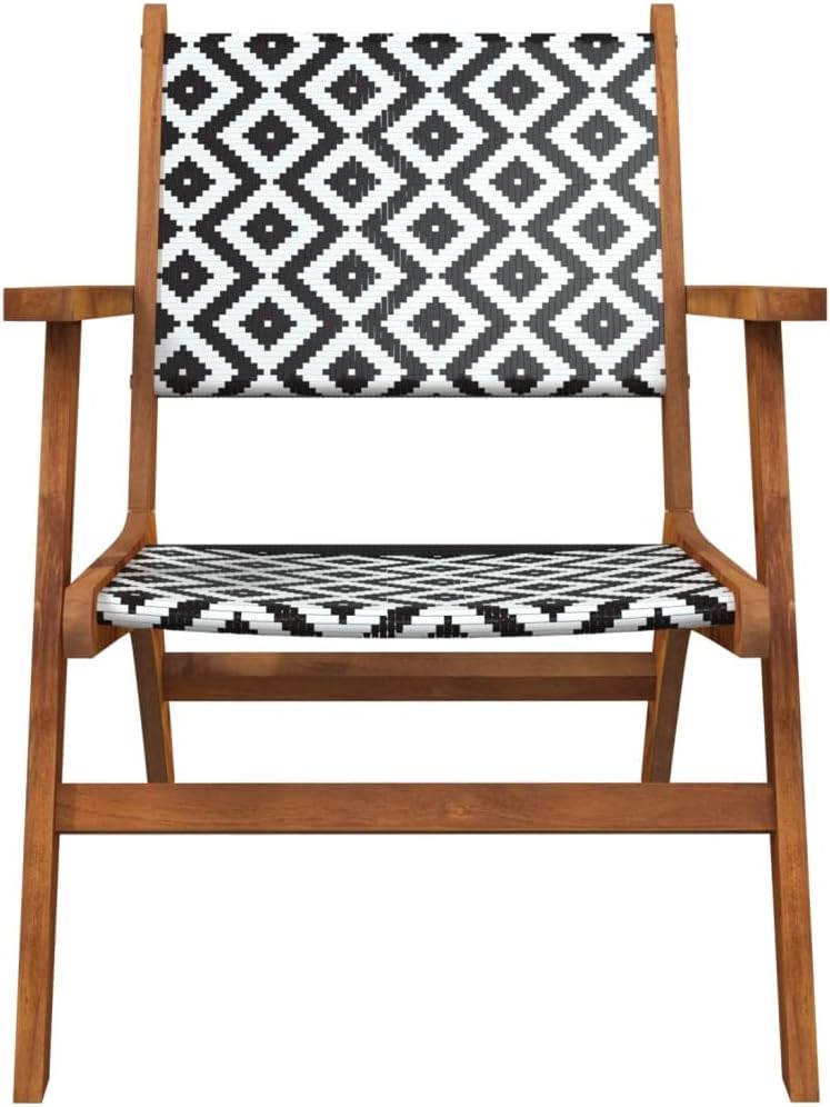 These wooden garden chairs provide a perfect place for you to relax and enjoy the sunshine in your garden or patio.With the poly rattan backrest and seating area, these outdoor chairs provide ulmost seating comfort and are also easy to clean. Thanks to the attractive lattice pattern, the patio chairs are an eye-catcher in any living space. Bring these garden chairs to add a touch of fun and comfort to your garden or patio!Note: In order to extend the life of your outdoor furniture, we recommend you to clean it regularly and do not leave it outdoors without protection unnecessarily.Clean: Use a mild soap solution.Storing: If possible, store in a cool, dry place indoors. If the product is stored outdoors, protect it with a waterproof cover. Wipe and dry the excess water or snow from flat surfaces after a rain or snowfall. Allow sufficient air circulation to avoid moisture-related damage.Material: Solid acacia wood, poly rattanDimensions: 25.6″ x 31.9″ x 28.9″ (W x D x H)Assembly required: YesDelivery contains:2 x Chair