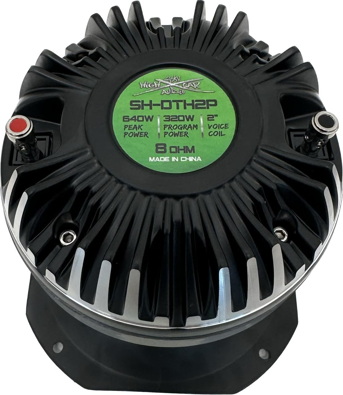 Introducing the Sky High Car Audio 2" Titanium Horn Driver SH-DTH2P—a premium component engineered to elevate your audio system with unparalleled clarity and power. Key Features: Exceptional Power Handling: With an AES power rating of 160W, program power of 320W, and peak power handling up to 640W, this driver delivers robust performance for high-output applications. High Sensitivity: Boasting a sensitivity of 114dB (1W/1m) with horn, it ensures efficient sound reproduction, maximizing output with minimal power input. Wide Frequency Response: Covering frequencies from 630Hz to 20KHz, it provides a comprehensive audio range, capturing both midrange and high-frequency details with precision. Durable Construction: Featuring a 2-inch (51.5mm) Kapton voice coil former, CCA winding material, and a titanium diaphragm, it is built for longevity and consistent performance. Quality Materials: Equipped with a 35 Oz ferrite magnet and aluminum body, ensuring durability and superior sound quality.