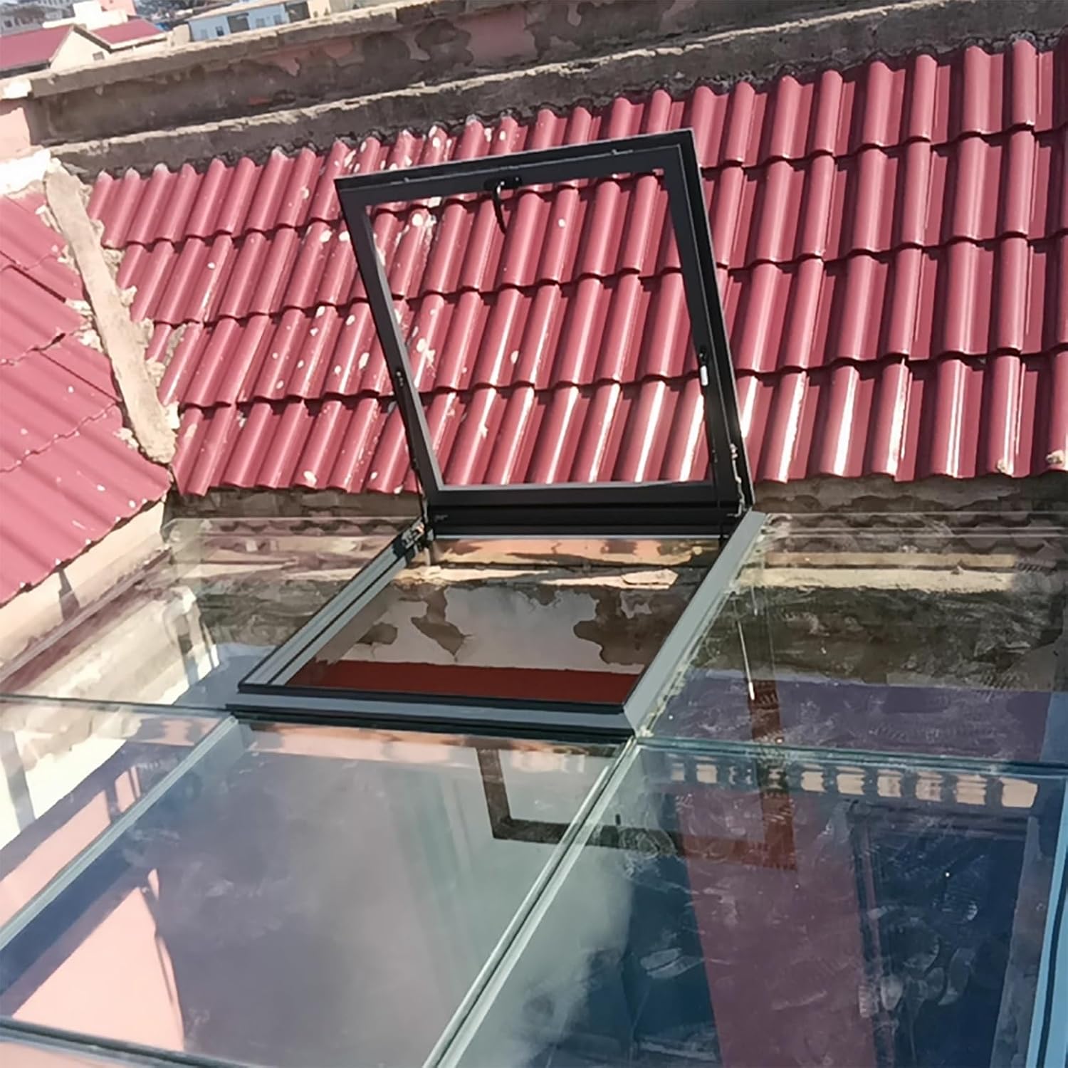 Enhance Your Home's Atmosphere with Our Efficient Attic Ventilation Solution: Elevate the air quality and circulation in your attic, roof space, or basement effortlessly. Designed with an easy-to-open mechanism, this attic window well cover promotes optimal airflow while effectively reducing humidity accumulation, contributing to a healthier living environment. **Key Features:** - **Durable Construction:** Made from high-quality aluminum alloy and tempered glass, ensuring longevity and resistance to the elements. - **Customizable Dimensions:** Available in various widths and lengths to perfectly fit your specific needs. - **Versatile Design:** Ideal for use in roofs, attics, porches, basements, and sunrooms, making it a versatile addition to your home. **Usage Tip:** The skylight is designed for internal operation only, providing safety and convenience without external access. **Package Includes:** 1 x skylight (Please note that additional items shown in images are not included.) **Important Notes:** 1. Please be aware that colors may vary due to different monitor settings and lighting conditions—refer to the actual product for accuracy. 2. As each product is handcrafted, slight variations in size (1-2 cm) may occur. Transform your living space with improved ventilation and comfort, and experience the benefits of a fresher, healthier home environment.