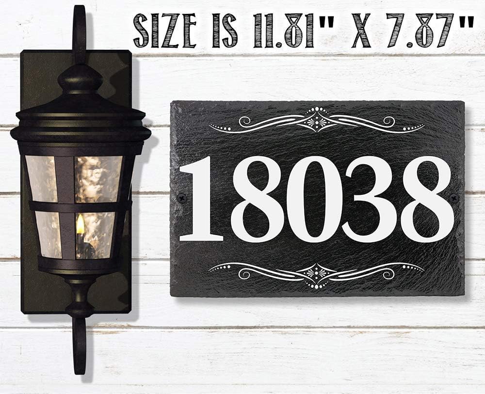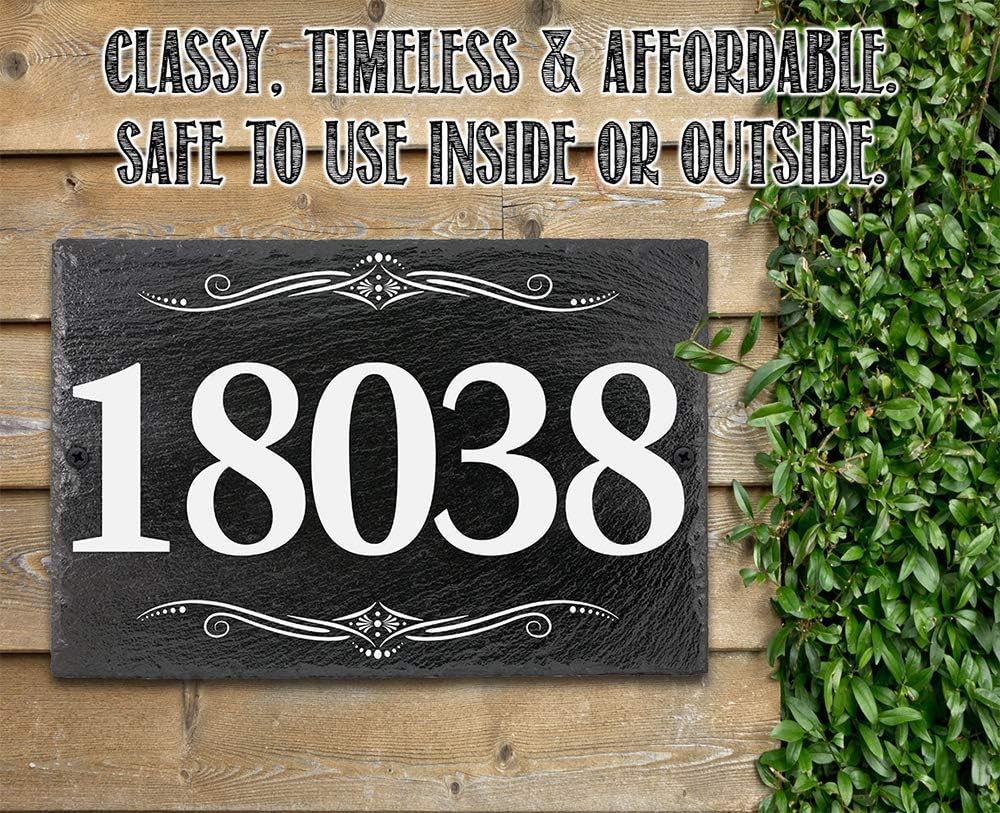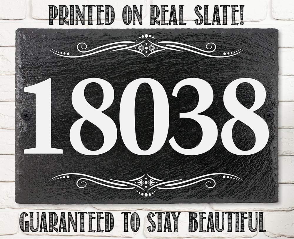 CUSTOMIZED- Add an address to make it truly uniqueTHE PERFECT HOUSE WARMING GIFT - A truly unique gift with their new home address printed on the real slate plaqueDURABLE - 11.8" x 7.8" Slate sign printed with epoxy ink (Not Cheap Vinyl) so you can proudly hang it outside. It will never fade.LOVE IT OR RETURN IT - I'm so sure you're going to love the sign you can return it for any reason. Yup, even though it's customized. We want you to be happy. Plus we'll just recycle it into a new sign MADE IN THE USA (Tomball, Texas) in our family-owned shop