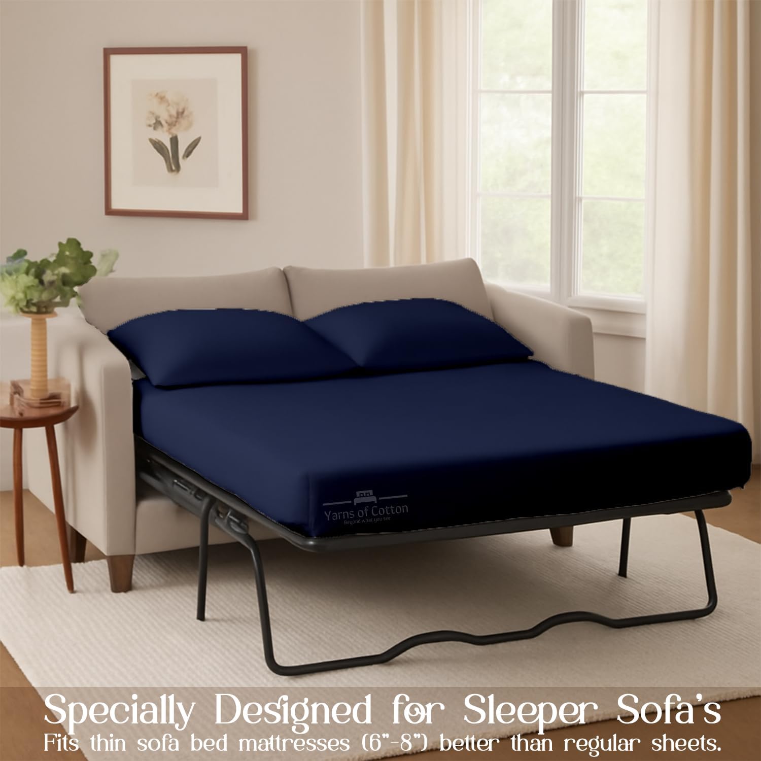 Sleeper Sofa 4 Piece Bed Sheet Set Premium Quality 100% Cotton 500 Thread Count, Smooth & Super Soft Sateen Weave, Extra Soft Bed Sheets, Wrinkle Free, 6 Inch Deep Pocket (Queen, Navy)
