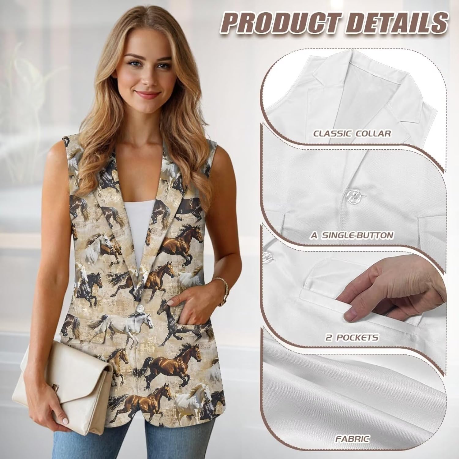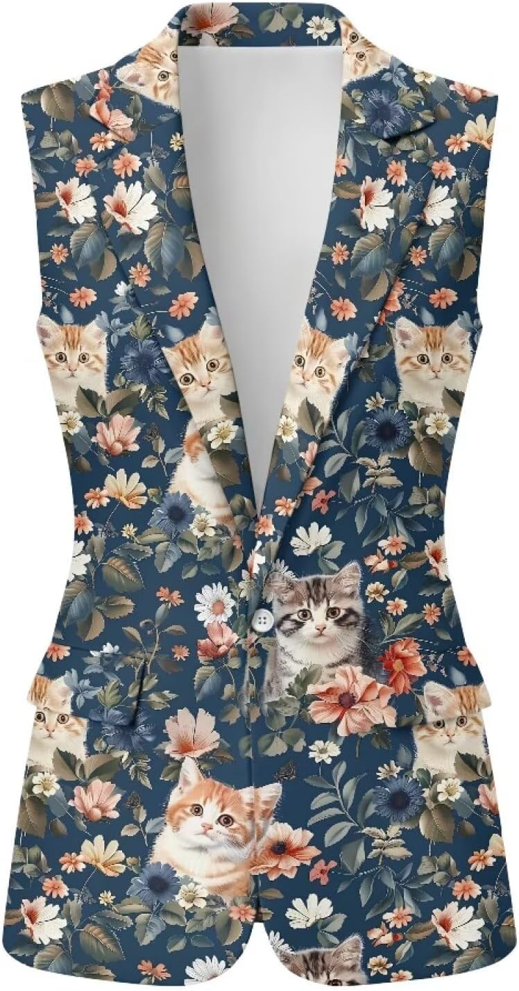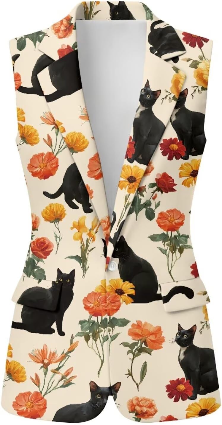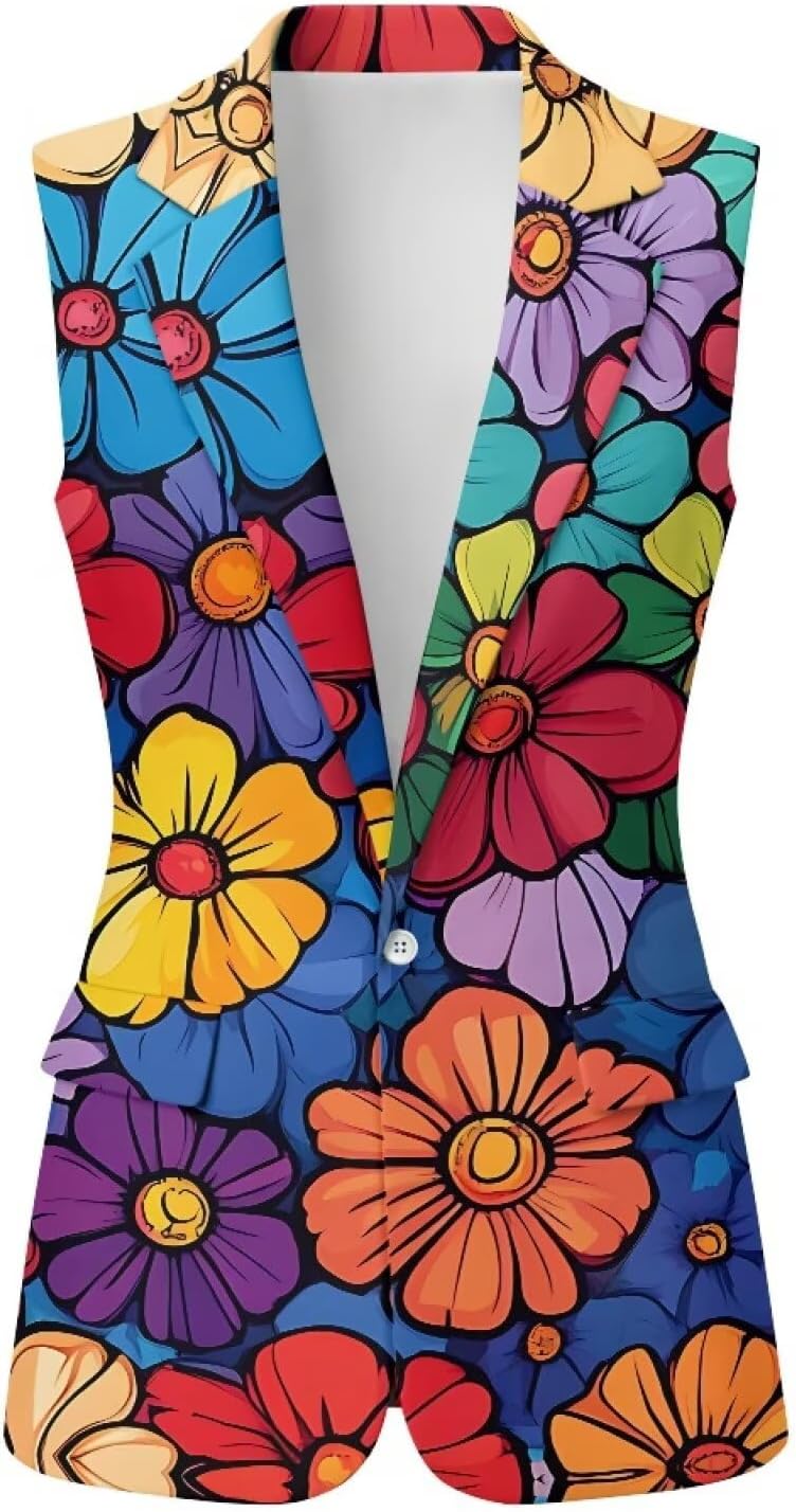 Women's Suit Vests Button Down Sleeveless Vest Blazers Tops Waistcoat Sleeveless blazer vests for women are a must have item in your wardrobe for all seasons. Wearing this suit vest, you can easily cope with business work, weekend shopping, or vacation travel. Women's work office vest tops have a variety of bright colors and fashionable patterns for you to choose from, which can meet all your aesthetic requirements for suit vests and let you have your own fashionable style. At the same time, it is also a gifts for your wife, family or friends on birthdays and holidays such as Thanksgiving, Halloween and Christmas. Size Chart: Small: Length: 25.59", Bust: 36.61", Waist: 35.04" Medium: Length: 26.18", Bust: 38.58", Waist: 37" Large: Length: 26.77", Bust: 40.55", Waist: 38.98" X-Large: Length: 27.36", Bust: 42.52", Waist: 40.94" XX-Large: Length: 27.95", Bust: 44.49", Waist: 42.91" 3X-Large: Length: 28.54", Bust: 46.46", Waist: 44.88" 4X-Large: Length: 29.13", Bust: 48.43", Waist: 46.85" 5X-Large: Length: 29.72", Bust: 50.4", Waist: 48.82" Feature: Soft Material: Women's business suit vest is made of soft polyester fabric, which is light and breathable, providing you with a comfortable wearing experience. Stylish Design: Women's suit jacket waistcoat is designed with v neck and single button closure, sleeveless to enhance freedom of movement. The pockets on both sides can store small items you carry with you. Applicable Occasions: Suit vest for women is suitable for daily wear and a variety of occasions, such as business, work, office, shopping, vacation and other indoor and outdoor activities.