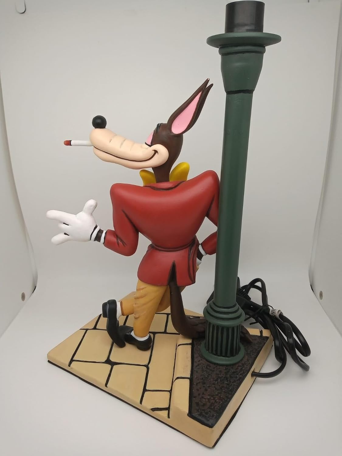 Lamp-diorama of the mischievous character created by Tex Avery. This is a replica of the lamp of Stanley Ipkiss from”The mask” film. The figure is 25cm tall and the total height is 29cm, made of polyurethane resin, painted and varnished. 100% Handmade. Full Height: 29cm