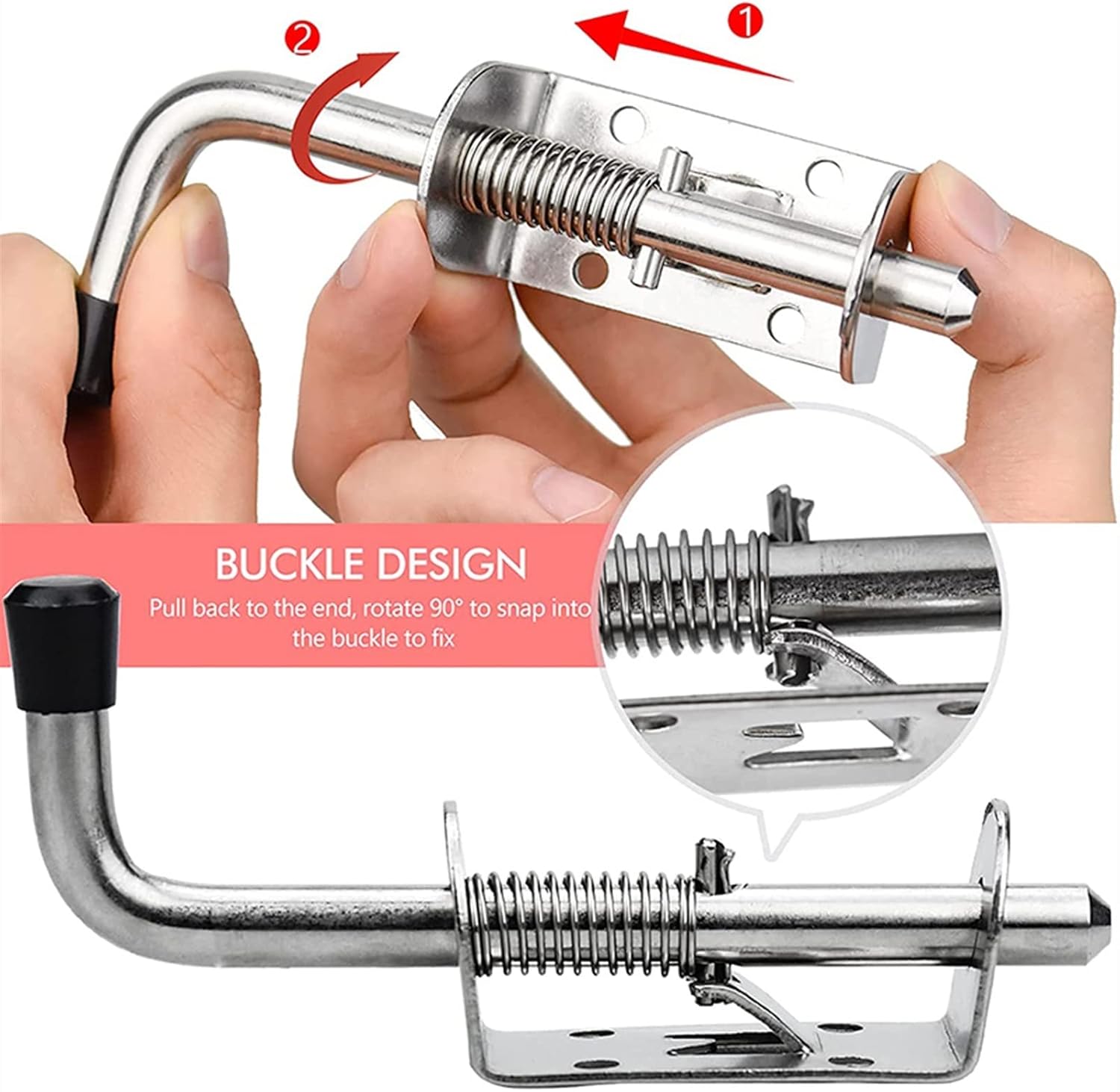 Slide Latch,Gate Bolt Lock,Bolt Sliding Door Lock, 2Pcs Garage Door Lock Latch Spring Latch Stainless Steel Spring Bolts Latches Security Barrel Bolt Latch Cabinet s Hardware (Color : 2