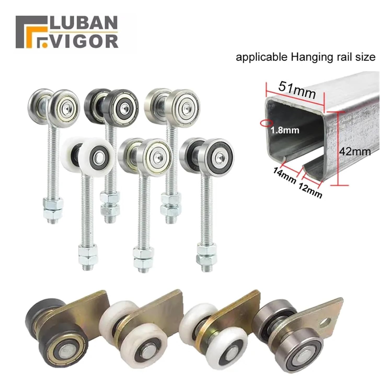 Sliding door Hanging Double Wheels Rail pulley stainless steel bearing steel nylon wheel Heavy-duty factory door