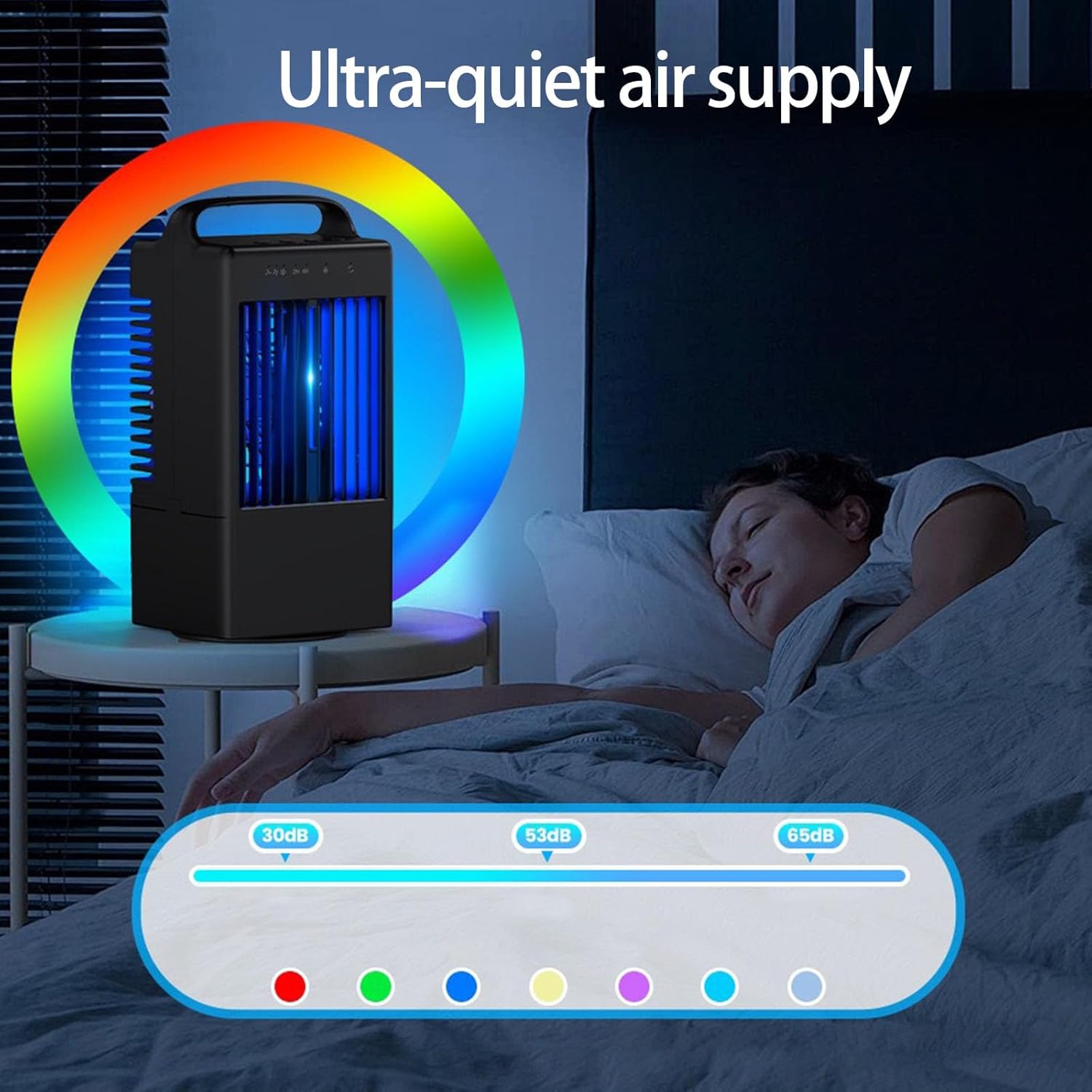Small Air Conditioning Cooling Fan 3 Speed 4H Timer Cooling Fan Radiator For Bedroom Room Outdoor Office DeskFeatures:Crafted with ABS, it features quiet operational, portable size ideal for tight space.This small conditioner 3 adjustable speed, breathing light, and 4h timer for comfort in offices or bedrooms.Ideal for students, office workers, and home users needing cooling with moisturizing atomization for skin friendly airflows.Perfect for desk use in dormitories, workspaces, or bedside tables, operating quietly and maintaining air circulation and humidity balance.Low noise, will not disturb your work and study; With colorful breathing light to create a good mood; Timing functionSpecifications:Component:ABSCapacity: 90mlPower supply: 5VPower: 8WSize: Approx.140x130x296.5mm/5.51x5.12x11.65inchPackage Includes:1Pc air conditioning FanNote:1.Please allow 1-2cm errors due to manual measurement, making sure that you not mind before order. 2.Due to the differences between different monitors, the picture may not reflect the actual of the item.