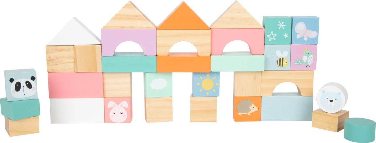 Learning to run with rabbit, panda and others This walking cart in trendy pastel colors supports children during their first attempts to walk. Double play promises 34 wooden blocks. Partially natural, partially maintained in delicate pastel shades and decorated with cheerful animals, while stacking and building encourage understanding of the shape, motor skills and creativity of small builders. Rubberised wheels protect the floor and ensure a quiet ride. Continuous axle!
