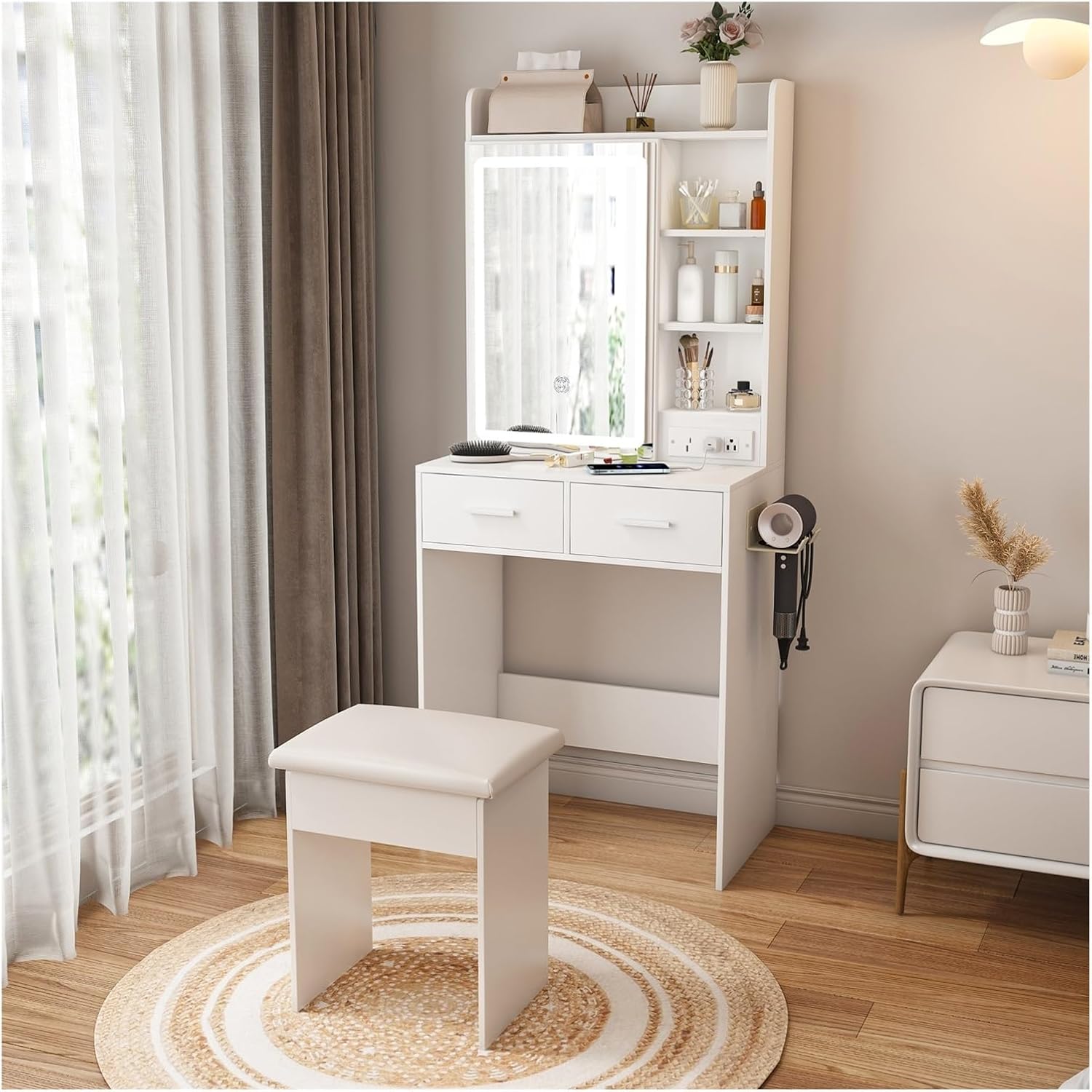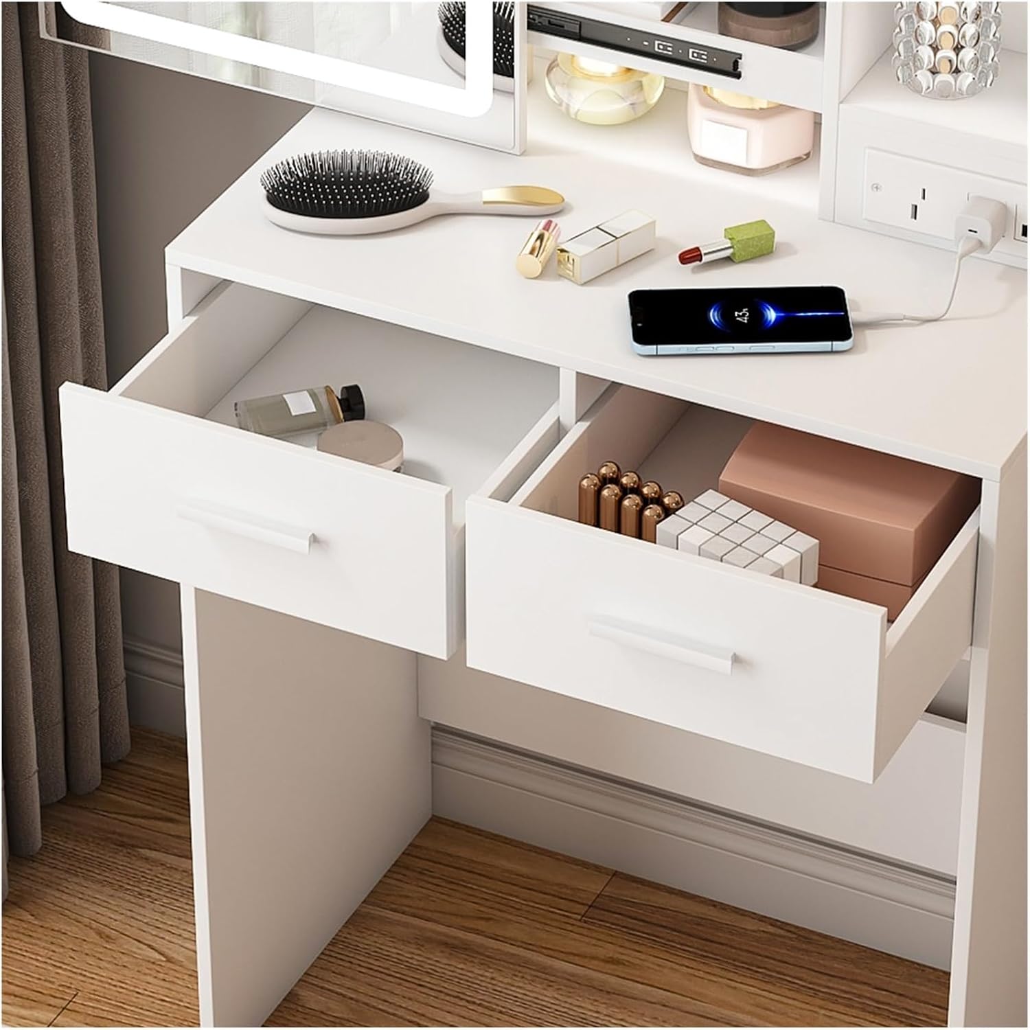 Main Color:White Main Material:MDF Filler:MDF+glass Product Style:American Design,Classic,Modern Number of Drawers:2 Drawers Use Case:Bedroom Product Dimensions Assembled Length (in.):23.62 Assembled Width (in.):14.17 Assembled Height (in.):51.97 Product Weight (lbs.):43.65 With sleek lines and modern finishes,experience refined beauty , where style meets practicality.