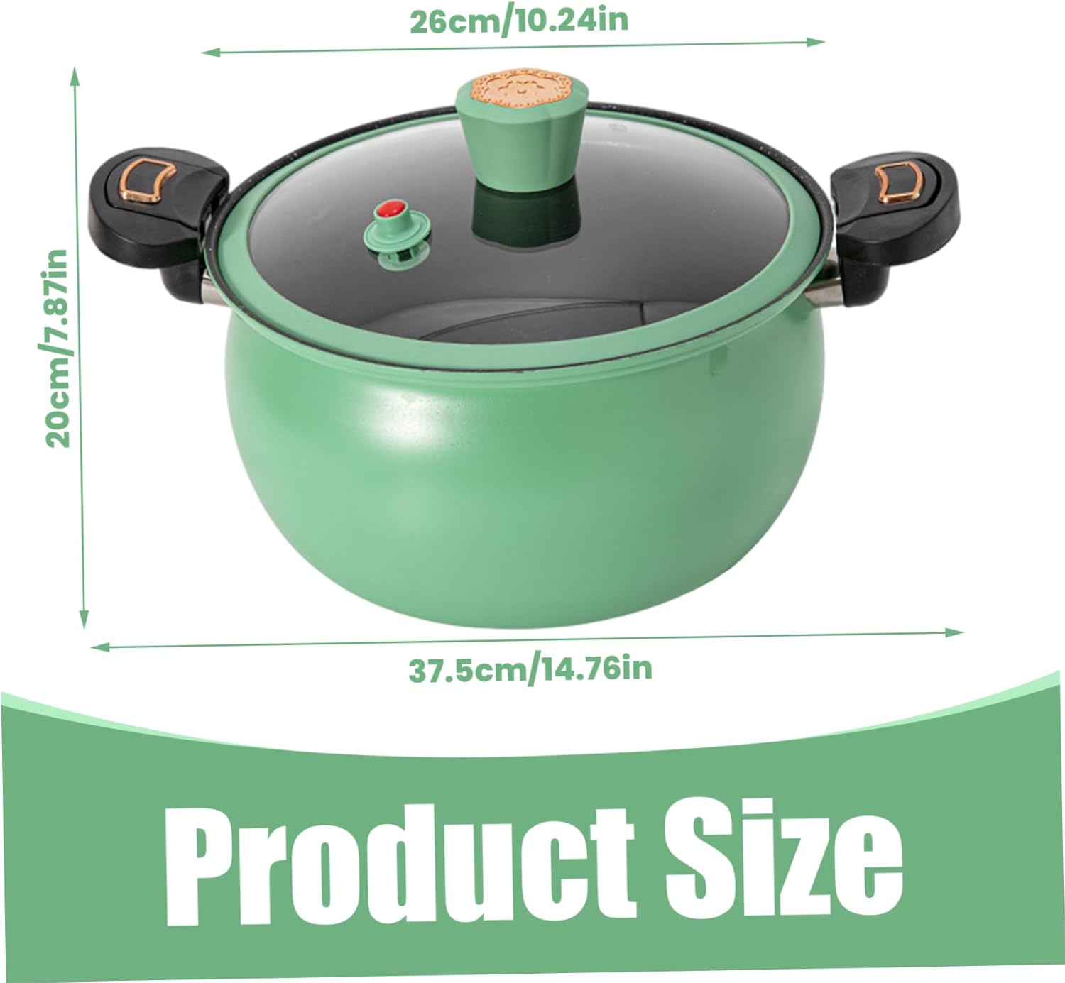 Description: This 8L Mini Pressure Cooker is the ideal kitchen companion for fast, efficient, and flavorful cooking. With a secure lock handle and non-stick interior, it's perfect for everyday meals. Features:. -Color: Green. -Material: Iron. -Size: 37.5x20 cm/14.76x7.87 inch. -Capacity: 8L. -Applicable: Open flame stove, induction cooker, electric ceramic stove. -Applicable spatulas: wooden spatulas, silicone spatulas. Note: Manual measurement, please allow slight errors on size. The colors may exist slight difference due to different screens. Package Including 1 * Mini Pressure Cooker