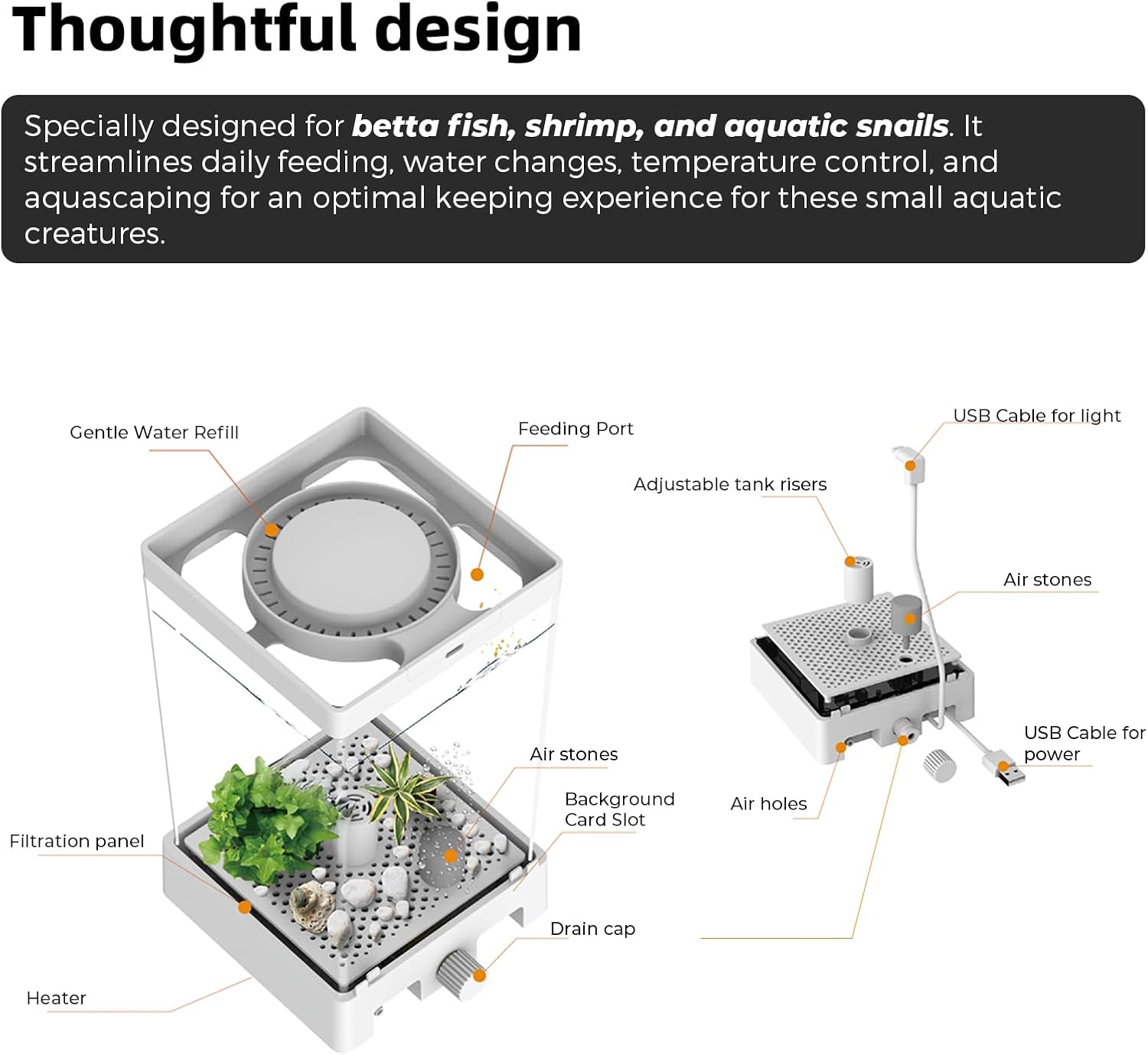 | Additional Features | Heating System, Quick and Easy Water Changes |