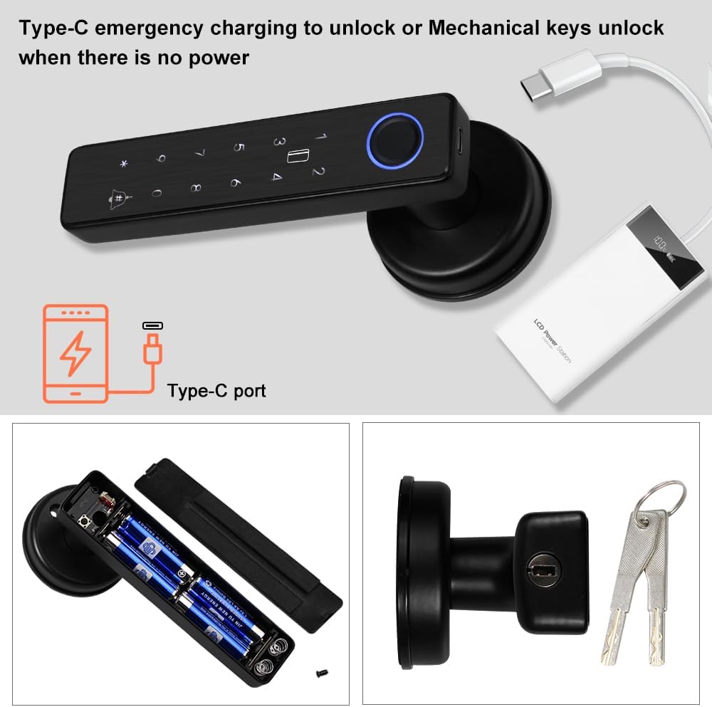 Transform your home or office security with this advanced smart door lock featuring multiple convenient access methods. Unlock your door effortlessly using fingerprint recognition, RFID card, digital password, or the intuitive Tuya smartphone app. The sleek matte black design includes an illuminated touch panel and clear numeric display for easy operation in any lighting condition. This versatile lock is designed to replace most standard door lock bodies while maintaining compatibility with various door types. The straightforward installation process requires minimal modifications to your existing door setup, with all necessary mounting hardware included. Perfect for both residential and commercial applications, this keyless entry system eliminates traditional keys while providing enhanced security features. Remote access management through the Tuya app lets you monitor and control your lock status from anywhere. The durable ABS plastic construction ensures long-lasting performance, while the modern rectangular design complements any door style. Note: Batteries required for operation but not included. Suitable for various applications including doors and drawers.