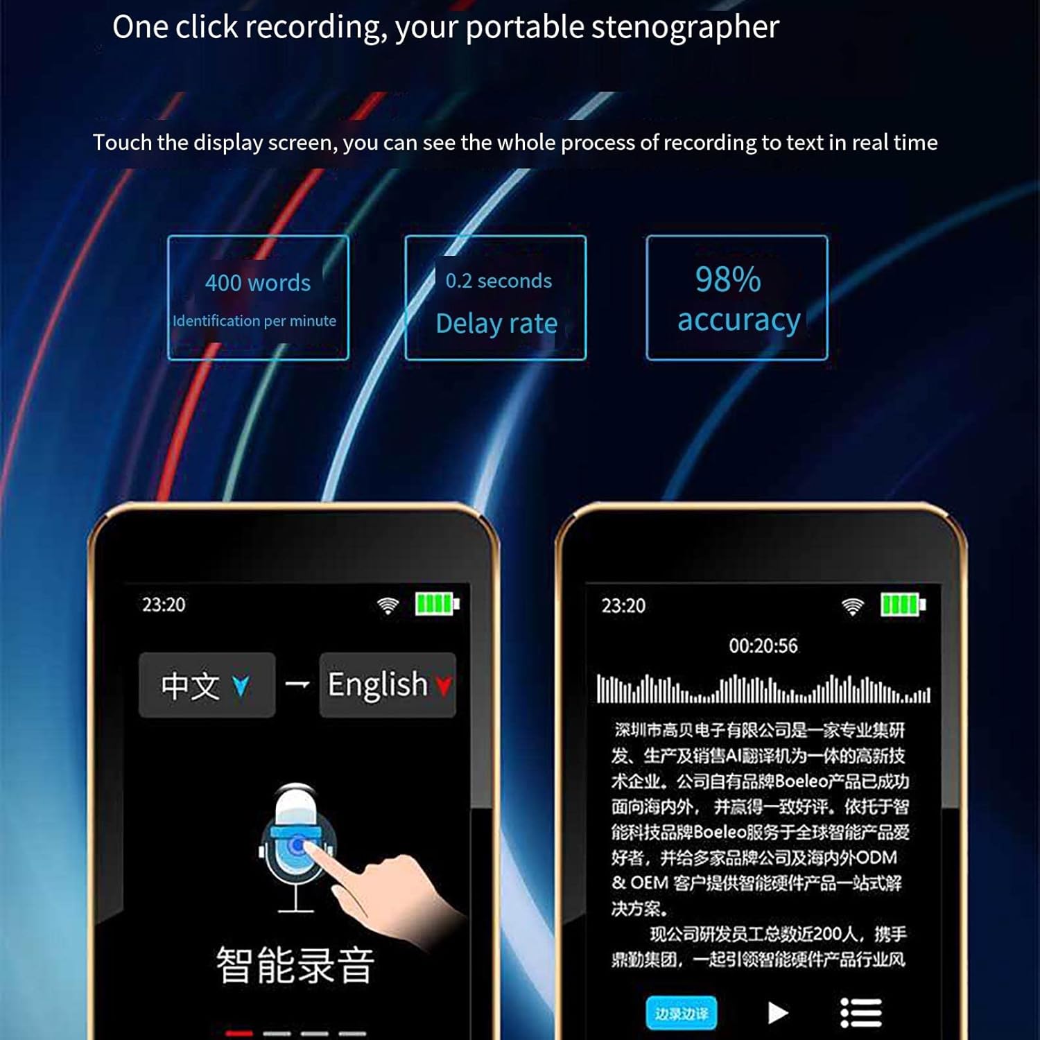 Have you ever visited a foreign country and wished you had a language translator with you? With , a two-way voice translator device, you can travel to countries around the world and communicate with confidence. This smart device continues to learn as you use it. Whether you're traveling through Asia or backpacking through Europe, language translator is your ultimate travel companion. Why Choose OUR Smart Language Translator Device? Online real-time translation in languages, serving you anytime, anywhere Achieves 98 percent accuracy Two-way Instant Translator Language Translator Device HANDHELD AND PORTABLE Language translator device size makes it the perfect travel companion. Our language translator device fits comfortably in the palm of your hand. Put it in your pocket, stick it in your purse. Its portability means you can take it whenever and wherever you go. Notice: 1. Due to the light and screen difference,the item's color may be slightly different from the pictures. 2. Please allow 1-3cm differences due to manual measurement. 3. 100% Satisfaction Guarantee: If you have any question about the product you received, please contact us without hesitation. We would try our best to help you and improve your purchasing experiences. Thank you for your kindly understanding.