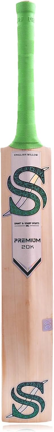 Elevate your cricket game with this premium English willow cricket bat from Smart & Sharp Sports. The Premium 20k model features a full-size blade perfect for adult players, complemented by a nice green handle that provides excellent grip and control. This handcrafted bat is specially designed for practice sessions and matches using PU balls, offering the right balance of durability and performance. The bat comes complete with a protective cover to keep your equipment safe during transport and storage. The classic English willow construction delivers reliable performance for regular practice and casual matches. Whether you're working on your technique or engaging in practice matches, this bat provides the essential features needed to develop your batting skills. The ergonomic design ensures comfortable handling during extended practice sessions, while the full-size dimensions make it suitable for adult players of various skill levels.