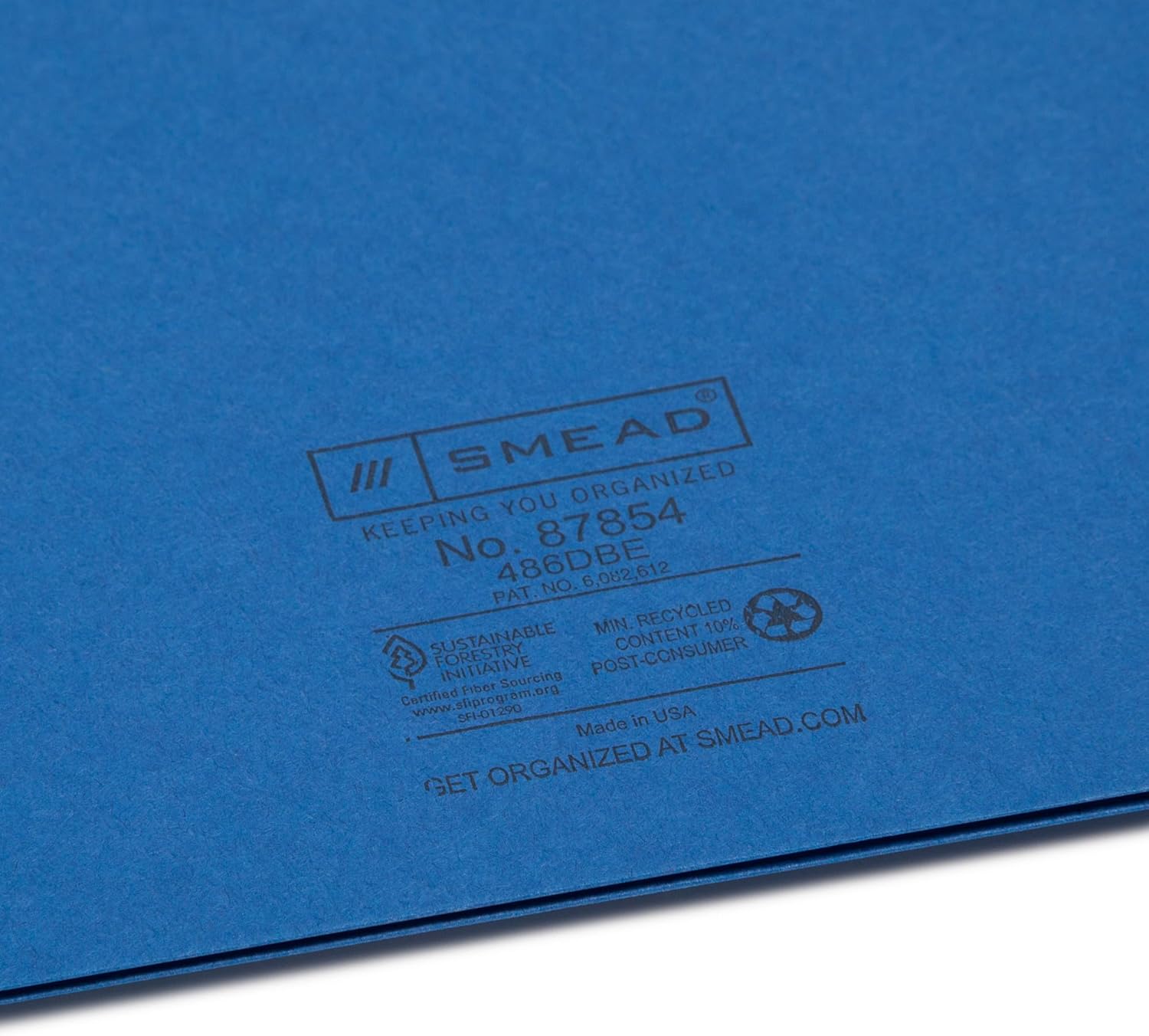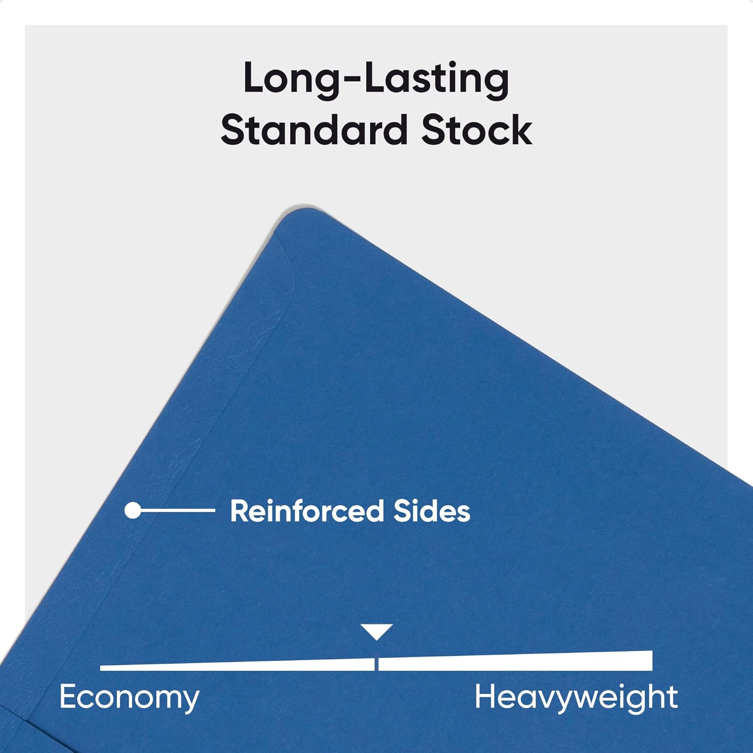 These blue folders with pockets safely hold documents for easy transport, making them great for office organization and work environments. These heavyweight paper folders with pockets help keep documents organized and safe. The left pocket is die-cut for a business card, making them great for business professionals, executives, and educators. With durable construction, these pocket folders for documents can be used on their own as document organizers, or with other office accessories. Crafted from heavyweight textured stock, these blue file folders with pockets make a distinctive impression. The two pocket folders, reinforced at the sides, provide durability, and can securely hold up to 50 sheets each. With pockets closed in the center for additional security, these folders are an excellent choice for work environments focused on productivity and office efficiency. The folders are also suitable for students interested in maintaining an organized workspace. They contain 10% recycled content and 10% post-consumer material.