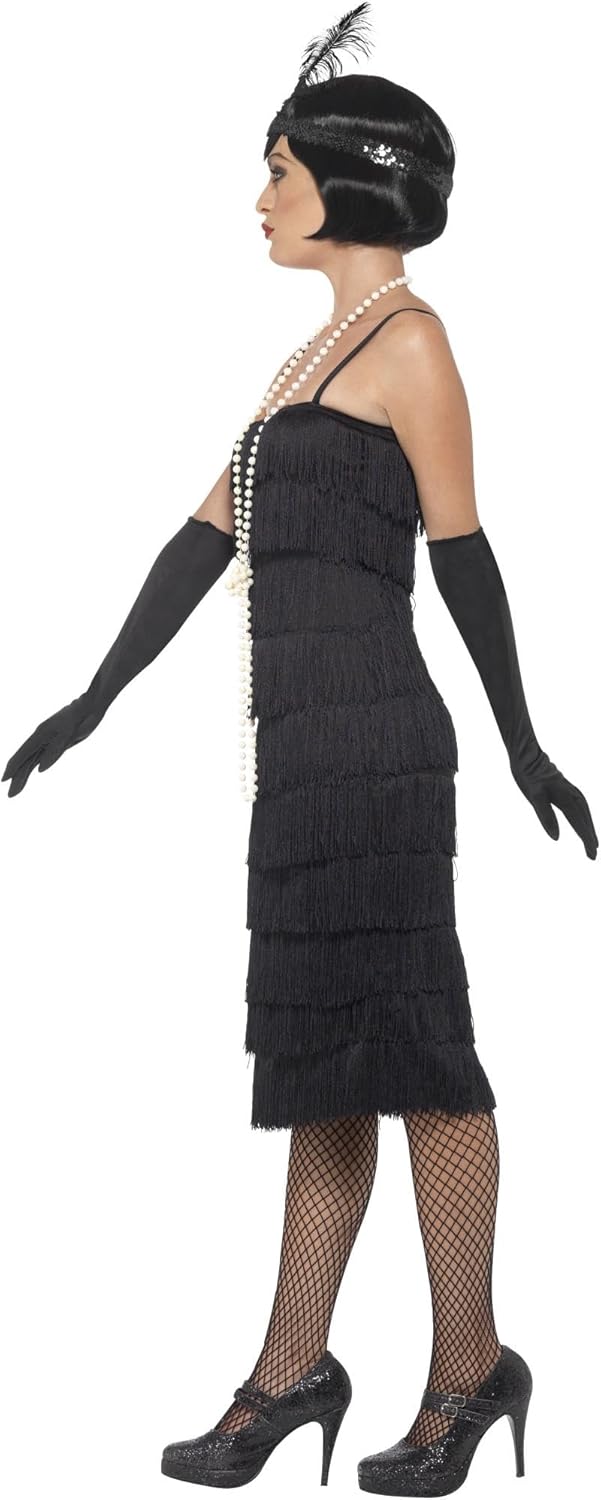 Looking for the ultimate disguise? Try a Smiffy's Costume on for size! Perfect for carnival, theme parties and Halloween. Package includes: 1 Smiffy's Women's Flapper Costume: Long Dress, Headband and Gloves, Does not include Boa and Necklace, Color: Black.