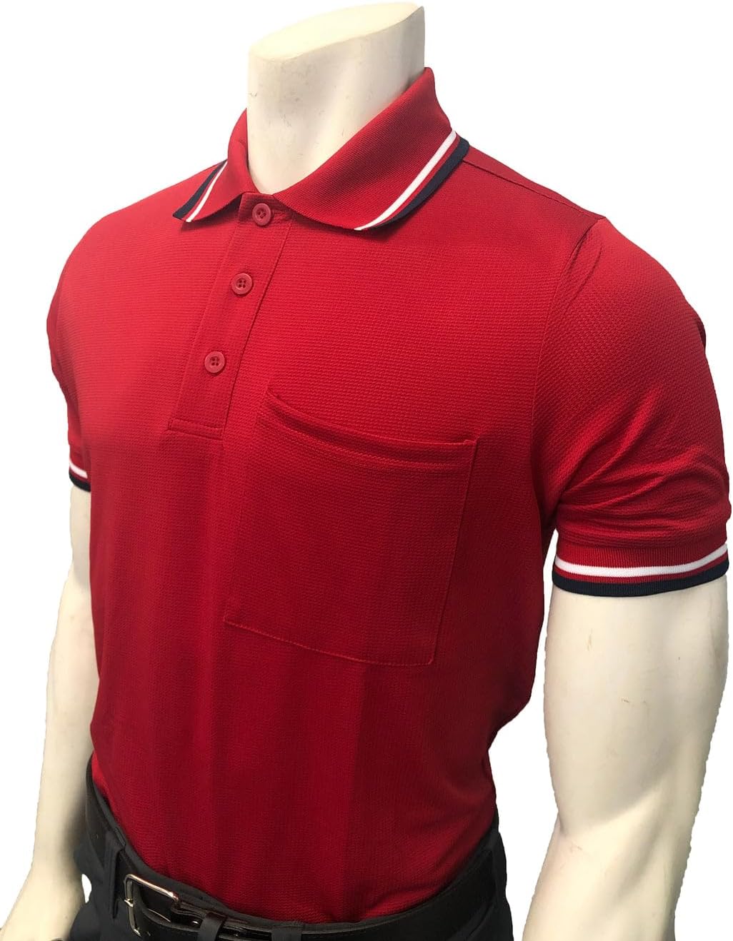 95% Polyester 5% Spandex High Performance Moisture Management Fabric Left Square Chest Pocket 3 Button Edge Stitched Placket Double Needle Hems Extra Tuck-In Length Split Tail Bottom Sized to Accommodate Chest Protector Available in Sizes: Small - 4XL