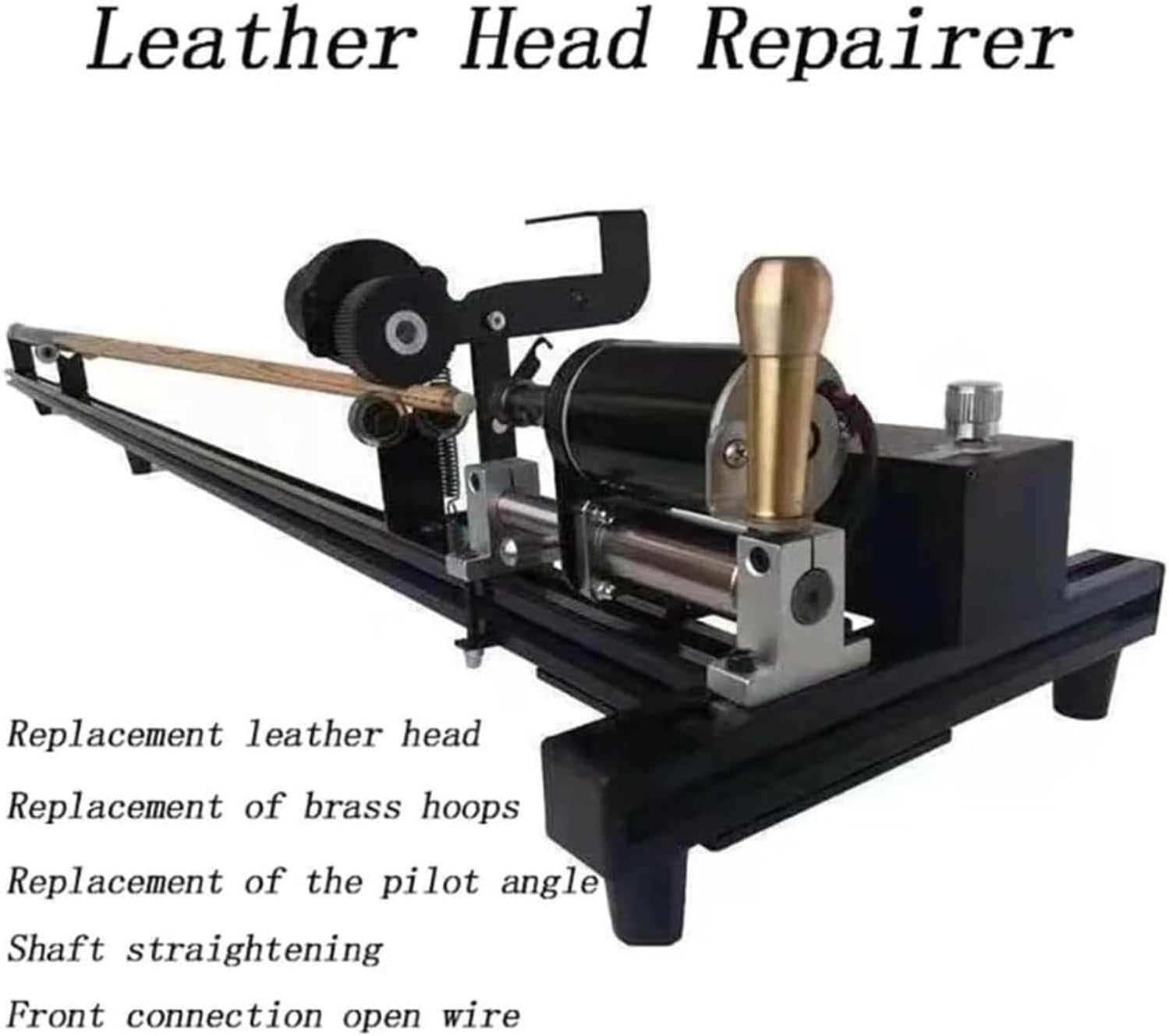 ✔Operation is very simple, and the push rod operation is specially designed for people without basic knowledge of lathe use. After watching the how-to video, anyone can start using it immediately.✔What are the advantages compared to other billiard cue repair machines?It is simpler to operate, more cost-effective, user-friendly, easier to control, and has complete functions.✔Can the club be straightened?What we offer is a simple bar press tool that can perform any degree of bending. The effect depends on the user's actual operation proficiency.✔Is the machine accurate?There is a locator when replacing the copper hoop, which is good at all; the repair head is a shaped abrasive tool to ensure that the curvature of the head is perfect and the edge of the head is as smooth as a club.✔Specification:Main profile thickness: 30*30mmMain body weight: 8 kgConfiguration: Main motor 300W✔Accessories:1* Snooker cue repair tool1* Accessories