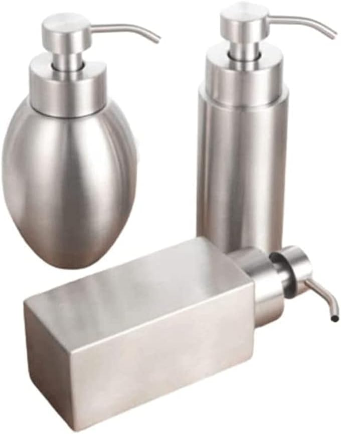 Product name:Soap Dispenser / Lotion Bottle / Lotion Dispensers / Soap Lotion Dispenser / Soap pumps / Soap Pump DispenserColor classification:egg-shaped, square, cylindricalMaterial: 304 stainless steel mattePacking: PP plastic bag + cartonCapacity: cylindrical 350ml/11.8oz, egg-shaped 580ml/19.6oz, thick square 400ml/13.5ozNet weight: about 240 grams (cylindrical and egg-shaped), thick square 370 gramsDimensions: cylindrical diameter 6cm/2.3", height 19cm/7.4"Dimensions: thick square 6cm/2.3" wide, 19cm/7.4" highSize: egg-shaped middle diameter 9cm/3.5"*total height 18cm7.0", bottom 4.5cm/1.7"How to use: 40% emulsion, 40% clear water + 20% leave empty to pump out the foam directly, if the emulsion is too thick, please mix more waterUsage: Used for packing make-up, shampoo, shower gel, etc.Features: environmentally friendly, durable, reusableFriendly tips. 1. Due to the impact of the shooting environment and light, the physical and picture color may have color differences, for reference only! 2. Due to different measuring tools and methods, the data error of 1-3cm, please understand. Wish you happiness!