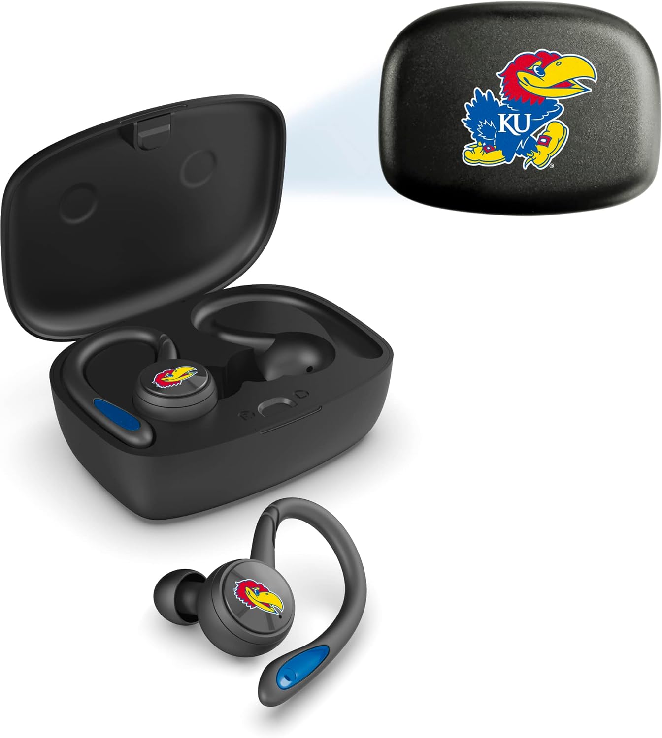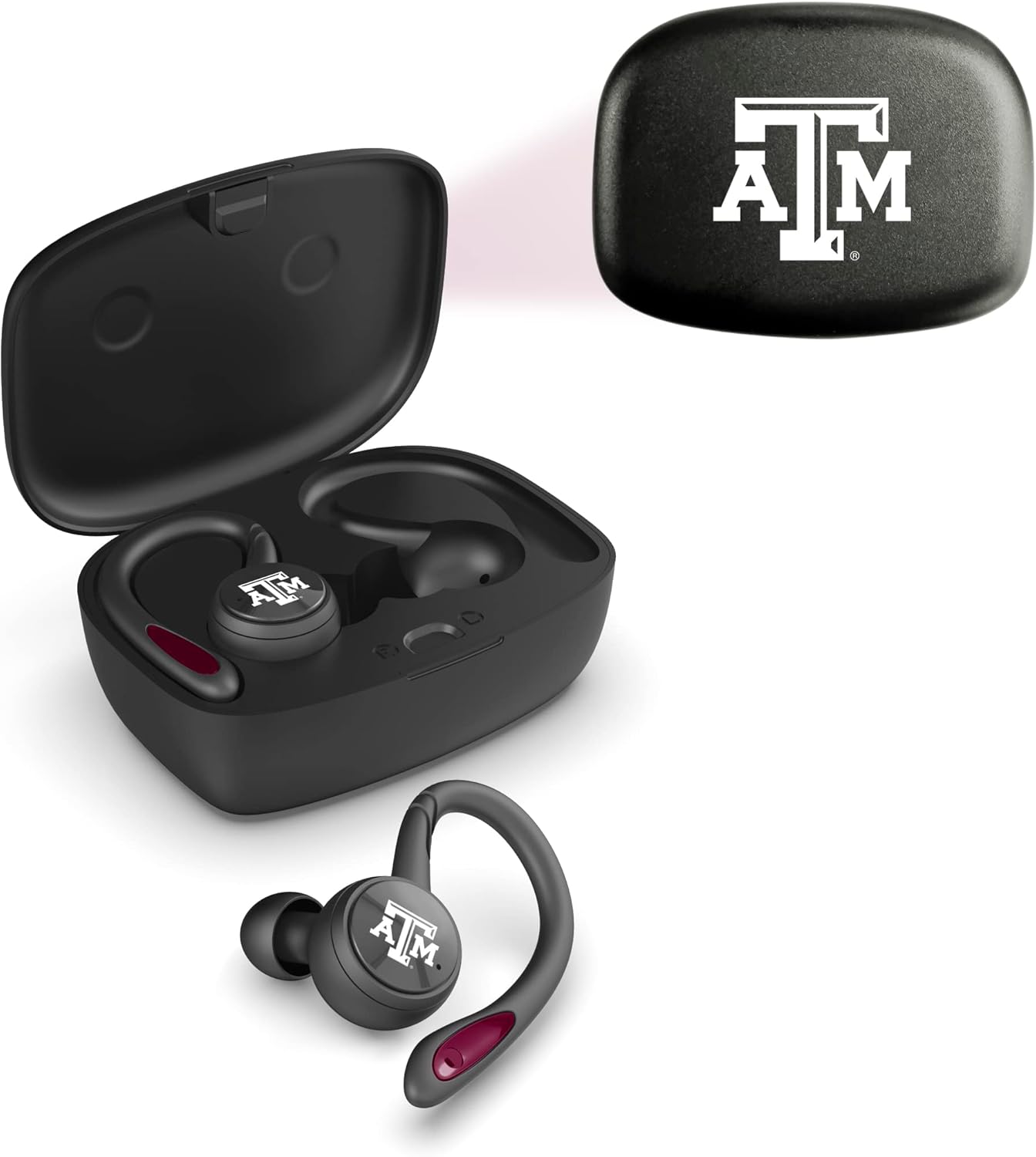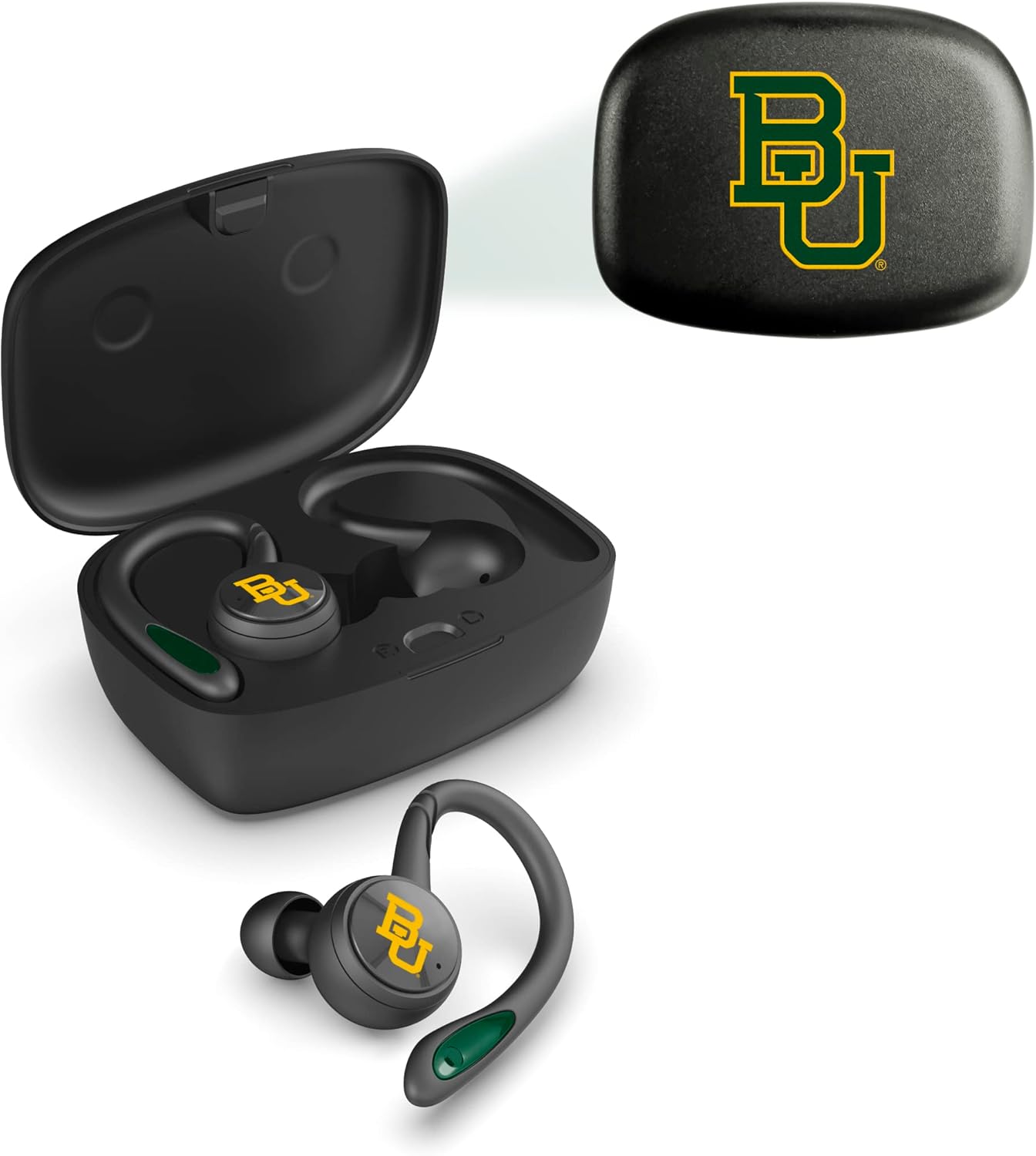 The SOAR True Wireless Earbuds are the perfect earbuds for the sports lover in your life. Premium stereo sound, support your team without having to sacrifice quality. The built-in microphone makes taking calls a breeze on the go. These headphones automatically connect to all Bluetooth enabled devices and stay connected-with a 30ft range. No need to worry about your headphones losing power while out, the portable charging case allows for 5 times full charges on the go. Officially licensed NCAA product.