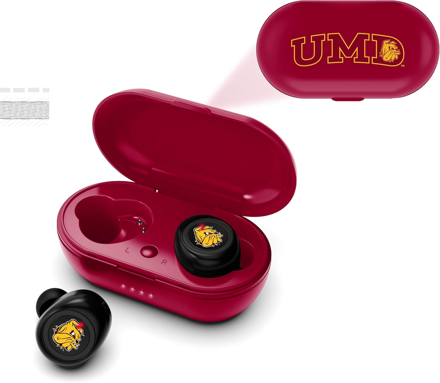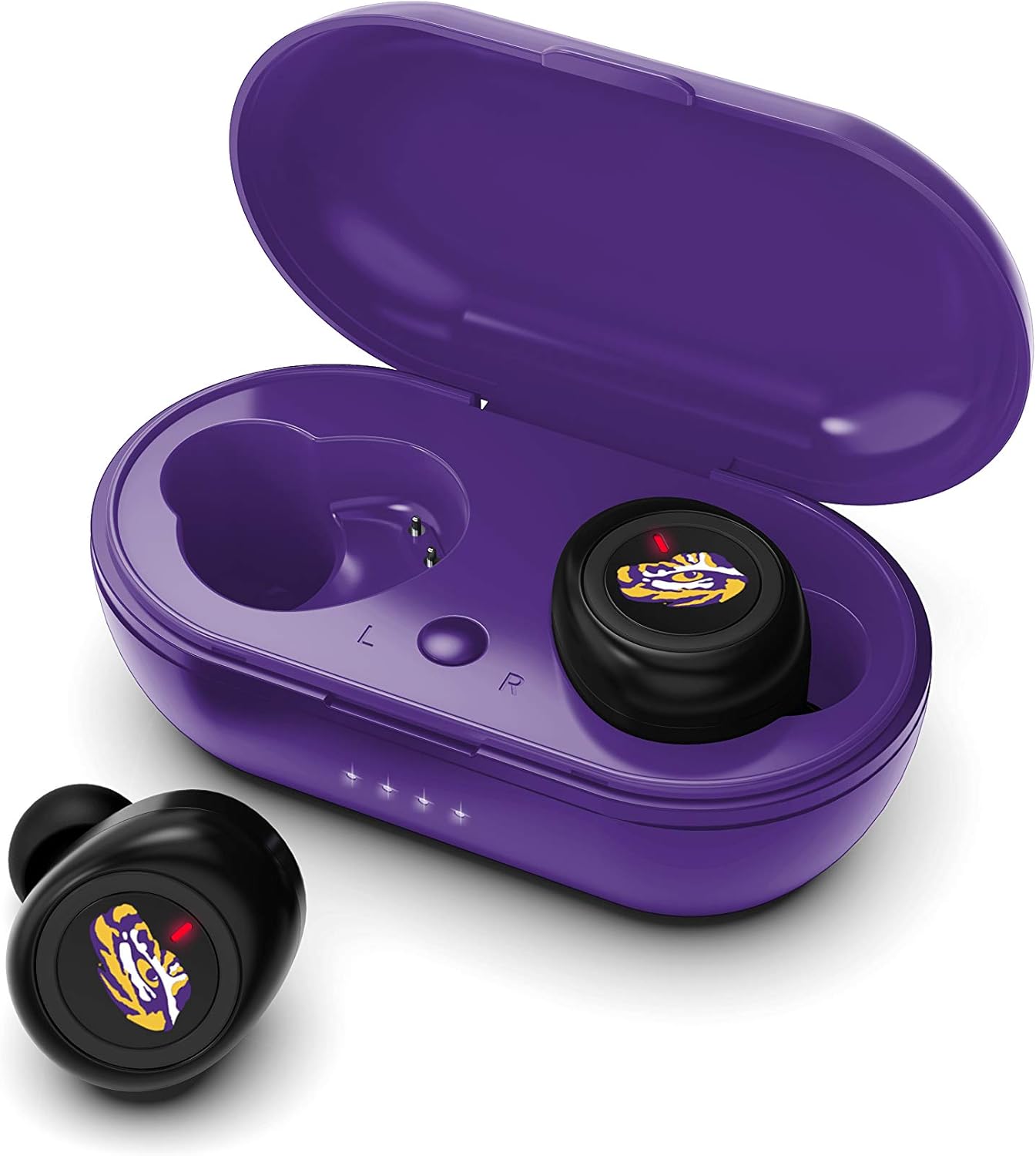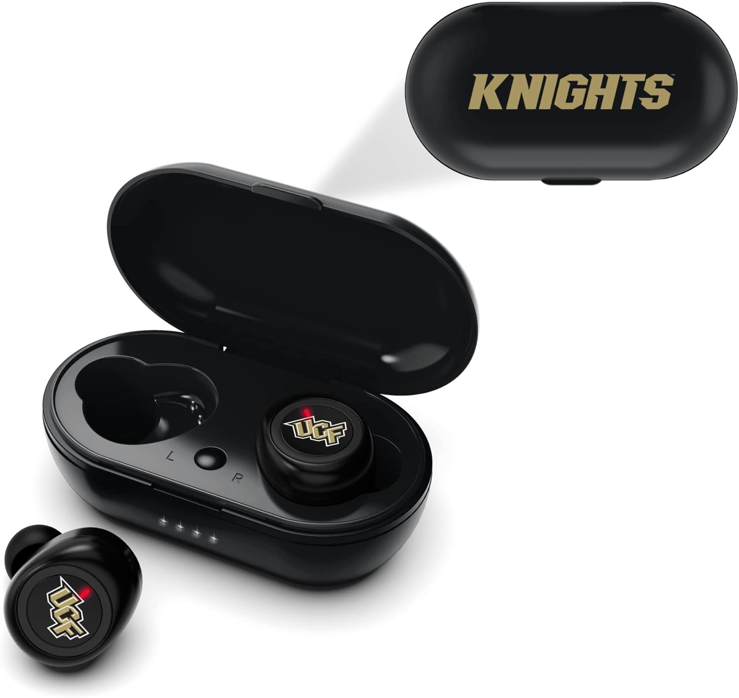 The SOAR True Wireless Earbuds are the perfect earbuds for the sports lover in your life. Premium stereo sound, support your team without having to sacrifice quality. The built-in microphone makes taking calls a breeze on the go. These headphones automatically connect to all Bluetooth enabled devices and stay connected-with a 30ft range. No need to worry about your headphones losing power while out, the portable charging case allows for two full charges. Officially licensed NCAA product.