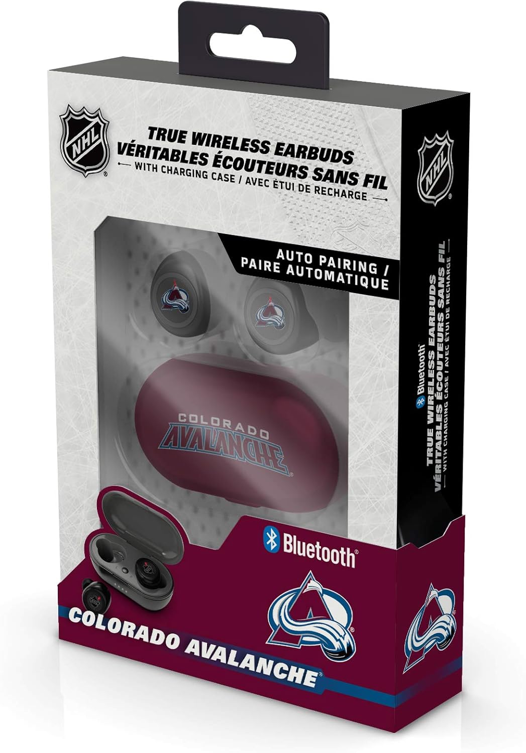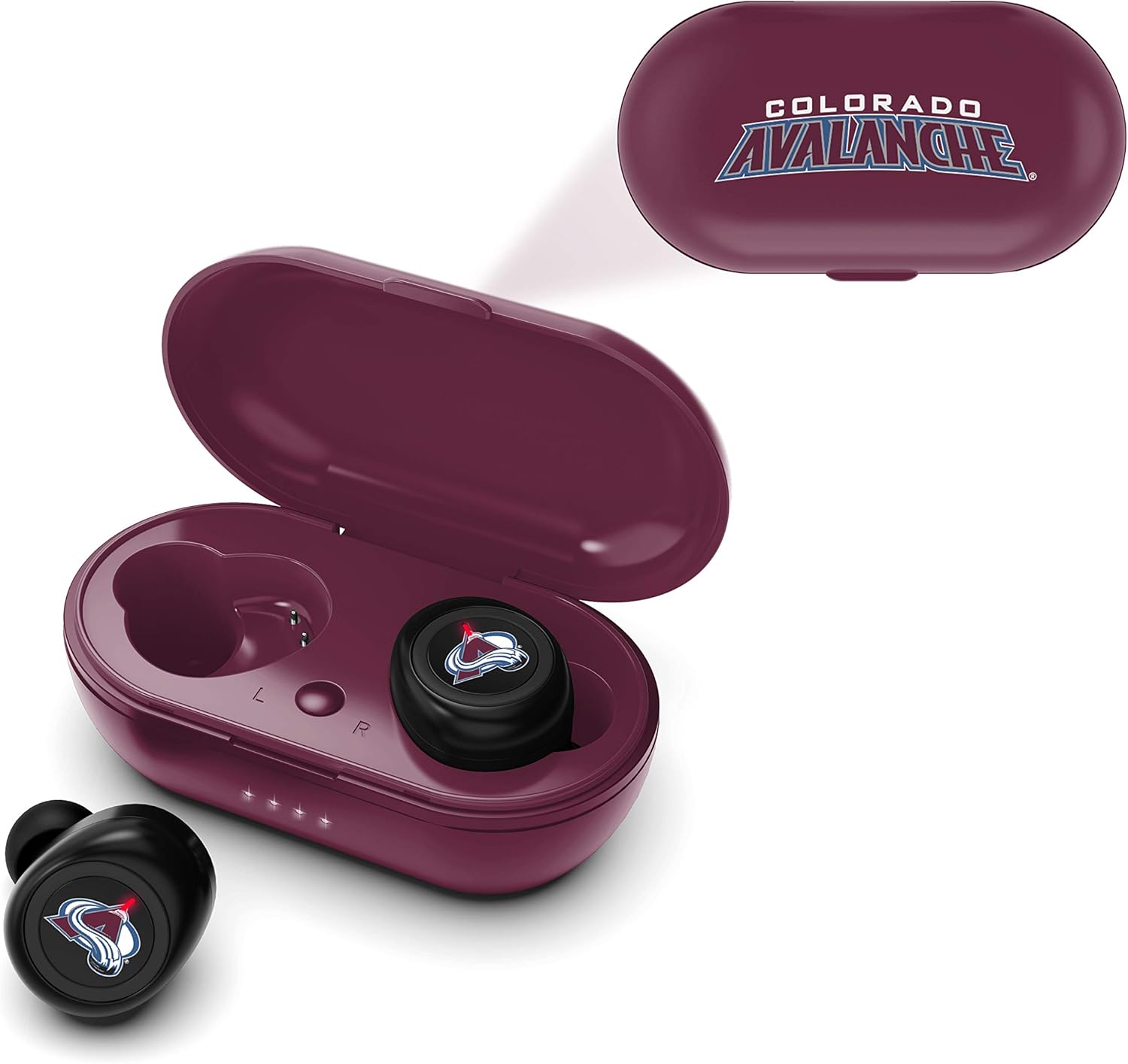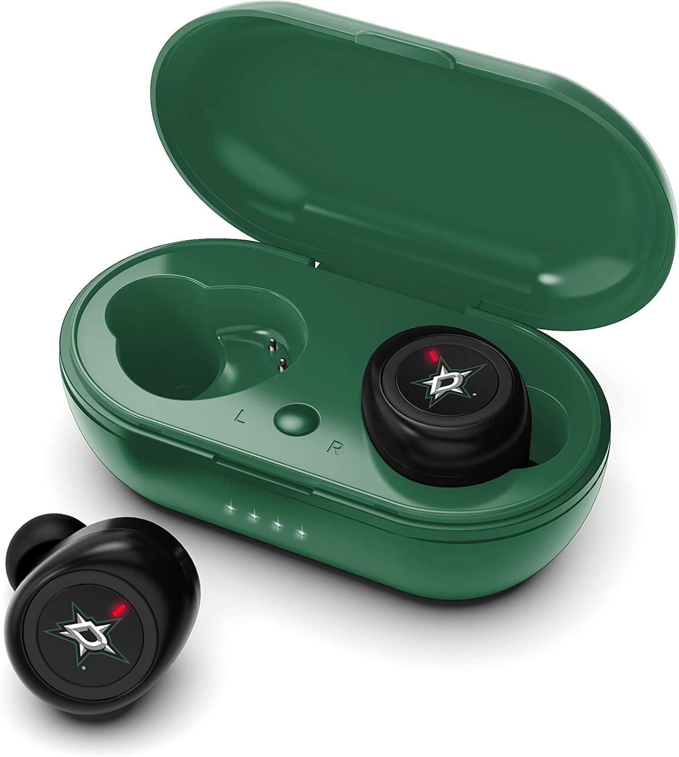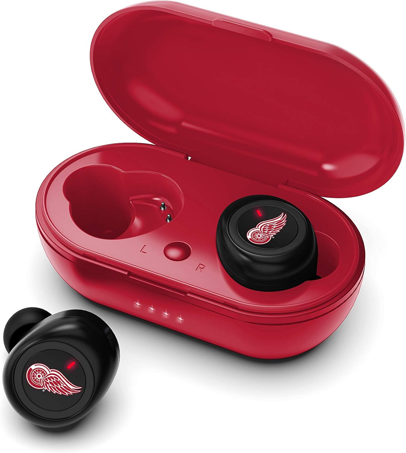 The SOAR True Wireless Earbuds are the perfect earbuds for the sports lover in your life. Premium stereo sound, support your team without having to sacrifice quality. The built-in microphone makes taking calls a breeze on the go. These headphones automatically connect to all Bluetooth enabled devices and stay connected-with a 30ft range. No need to worry about your headphones losing power while out, the portable charging case allows for two full charges. Officially licensed NHL product.