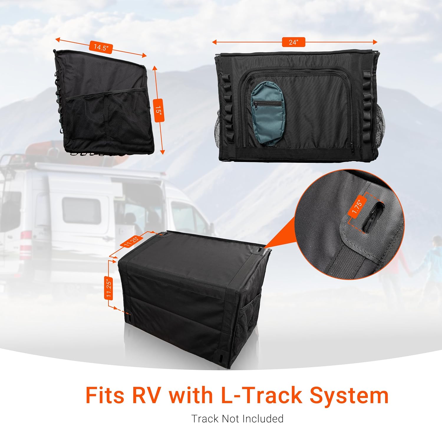 VANNCAMP Soft-Sided Overhead Storage Cabinet 24" - Space-Saving Organizer for Camper Vans, RVs, Mobile Homes | Vanlife Accessories, The L-track 12.5” need to be pre-installed