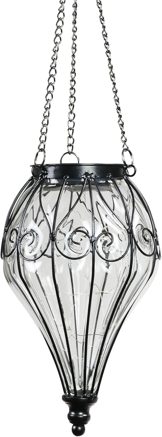 Add charm and warmth to any outdoor space with this elegant solar clear glass lantern! As the light shines through the stunning metal pattern, a glow is cast, and your ambiance is transformed! Makes a charming gift idea and a wonderful addition to your garden.