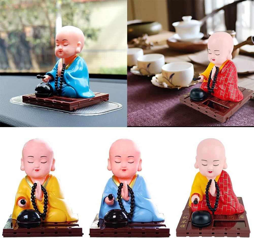Features:*Long-lasting Construction: Crafted from ABS material, this solar monk car decoration is designed to withstand wear and tear, it remains a charming addition to your space without fading or deforming over time.*Versatile Use: This delightful solar monk decoration is perfect for enhancing the atmosphere in various settings including cars, homes, and offices. It makes a thoughtful giving that can bring joy to friends and family in any environment.*Solar-Powered Motion: Utilizing optical principles, this unique decoration shakes its head when exposed to sunlight, transforming light energy into move energy while adding a for dynamic touch to your decor.*Unique Gifting Option: Perfect for special occasions like birthdays and holidays, this solar shaking monk car ornament is a distinctive giving that spreads happiness and positivity wherever it is placed.*Easy Setup: Enjoy a serene ambiance with this easy-to-install decoration. Simply use the included double-sided tape to place it wherever you desire, allowing you to create a calming environment effortlessly.Specifications:*Product Name:Solar monk ornaments*Material:ABS*Size:9.5*7.5*7.5CM*Color:Red, Blue, YellowPackage Content:1 x Solar Shaking Monk Car OrnamentsNote:1. The real color of the item may be slightly different from the pictures shown on website caused by many factors such as brightness of yourand light brightness.2. Please allow slight manual measurement deviation for the data.