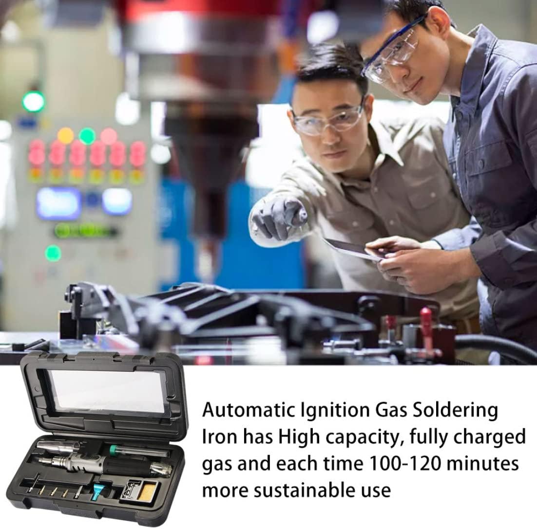 Description Soldering iron kit with 10 in 1 multifunctional design is compact and easy to use. Gas soldering iron set is widely used for kitchen baking tool, factory equipment maintenance, welding cars, aviation repair, hydropower project and electrical appliances, electrical control box repair and welding. Features Soldering iron kit -Color:Grey. -Material:Plastic. -Size:9.6x5.1x2.2inch. Flame temperature: 1300 ℃; Tip temperature: 450 ℃; Air temperature: 500 ℃; Time: 30-40 minutes. Package Including 1 * Blow Torch1 * Soldering Tip1 * Hot Tip1 * Needle Point Tip1 * Double Edge Tip1 * Engraving Tip1 * Scoop1 * Case1 * Resin Core Solder1 * Cleaning Sponge+Tray+Stand1 * User Manual