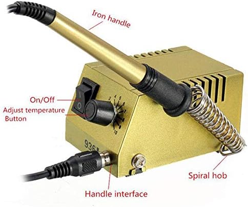 Occus Soldering Station Solder Iron Welding Equipment Repair Hand Tool Constant Temperature Soldering Station 936I Features: 1.Achievable heating in less that a minute 2.Short handle for perfect soldering balancing 3.long life heater. 4.Stable voltage control,high safety. 5.No leakage of as volt ax soldering pen is working at 12v technology. 6.Electric shock proof.(it is fully safe against electrical shock). 7.Light weight handle for perfect soldering for long time. 8.Easy to carry,long time solder work. 9.Applicable:SMD,SMT,DIP solder jobs,mobile computer repair industry. Specifications: Input voltage:AC 220V/50Hz Output voltage:12V Variable power:1-18W Temperature range:50-450 Celsius Iron heating:200-480 Celsius Heater:Stainless steel Color:As Picture Shown Soldering station size:5*8.5*4.5cm Electric iron size:17cm Plug:EU plug Package includes: 1*Soldering Station Item specifics:Model number: solderingironA8Output power: 1-18WOutput temperature: 12VInput voltagle: AC 220V/50HzDimensions: 5x8.5x4.5cmTemperature stability: 50-450 CelsiusHeater: Stainless steelU: Welding stationFeature1: ConvenienceFeature2: Repair Hand ToolWeight: 0.67kg