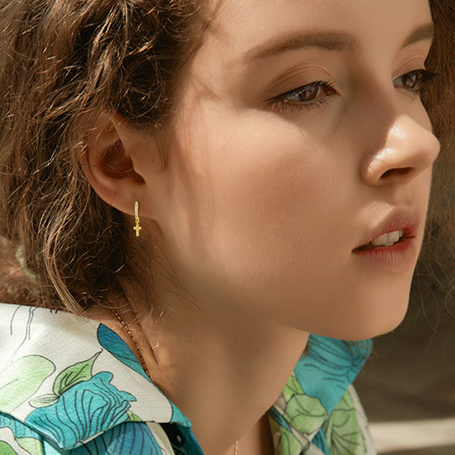 he classic 14k gold cross hoop earring is simple and ,understated & elegant Design14K gold cartilage hoop earring is cute,simple,dainty,light, great fit for your outfits and daily wear 14K gold cross dangle cartilage hoop earring information: Contain: Delicate Jeweler box Metal Color: Gold Metal type: 14k Stone Detail: Stone Color: White Cubic Zirconia type: 5A quality CZ Shape: Round Gift for Her: Girlfriend gift sister gift mother gift grandma gift best friends gift wife gift daughter gift birthday gift mothers ’day gift anniversary gift