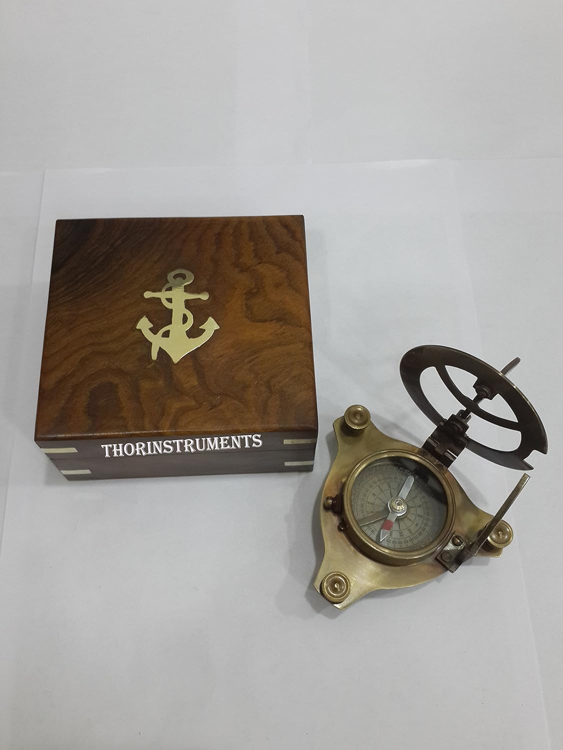 Vintage Brass West London Sundial Compass With Wooden Box Material: Solid Brass & Wood Compass Dial: 3" Antique Brass Finish
