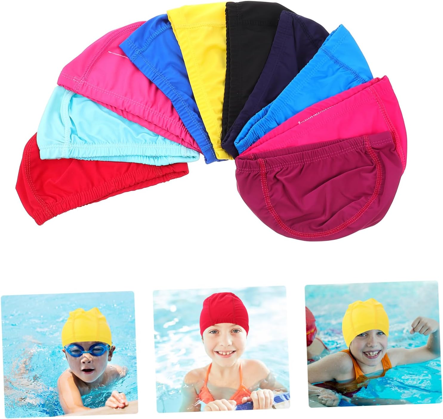 Package Include 10 x Swimming Caps Characteristics -Material: Chinlon Breathable Swim Hats -Color: Color Cloth Swimming Caps -Size: 21.00X12.00X0.20cm/8.25X4.72X0.08in Unisex Swim Hat -Specially designed for women and men, fashion style, they will like it Swim Cover. -Easy to put on and take off, allowing you to enjoy swimming experience Universal Swimming Hat. -Breathable and elastic swimming caps, providing you a great swimming experience Elastic Swimming Caps. -Manufactured with high-grade material, and comfortable to wear Swim Caps. -Lightweight and flexible, reduce the 's fatigue, can also hair Breathable Swim Hat.Goods Description Swimming Caps Stylish design, ensure its popularity.Outdoor Swim Supply This swimming caps are made of comfortable material, friendly, elastic and lightweight, which allows breathing and have a more comfortable fit.Swimming Caps for Women A to your friends, etc.Breathable Swimming Hat Multifunctional, very