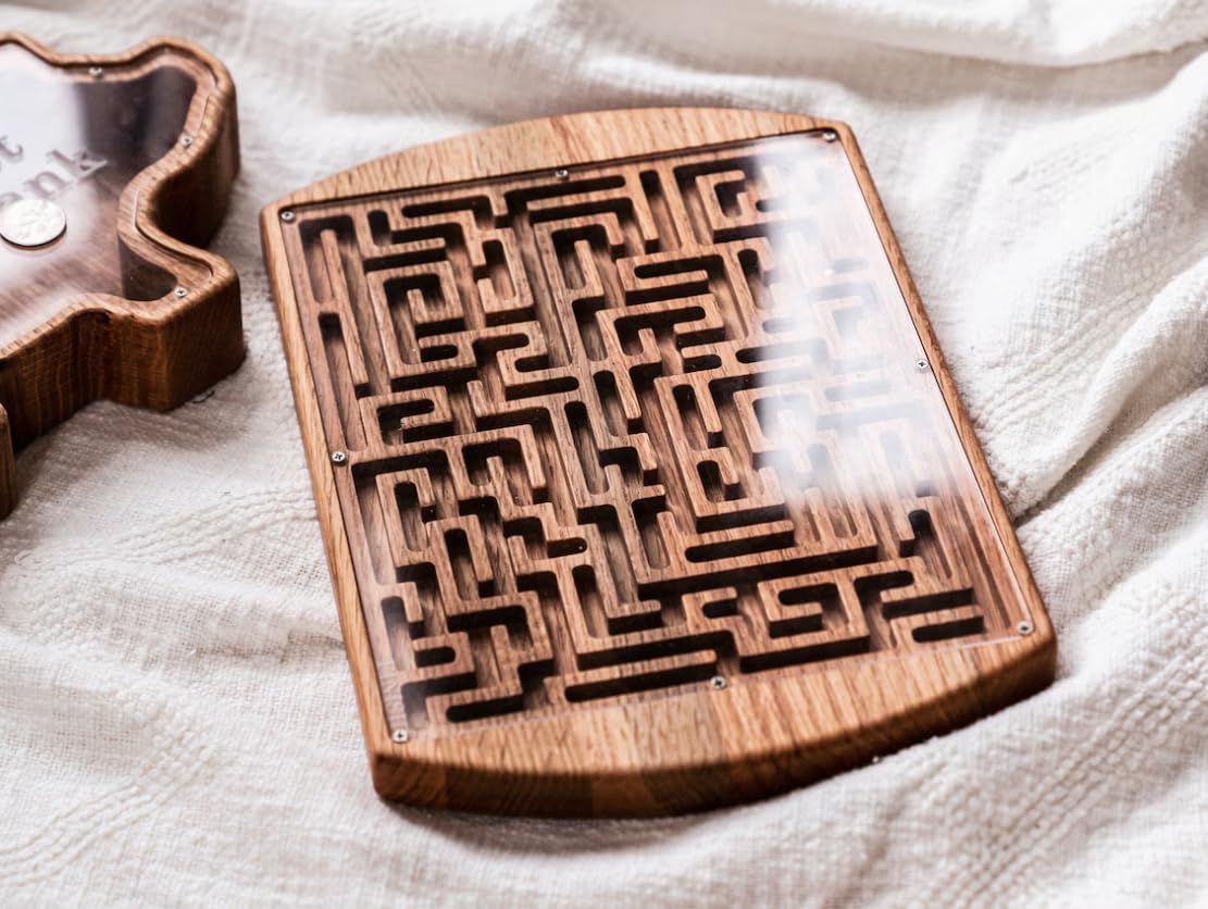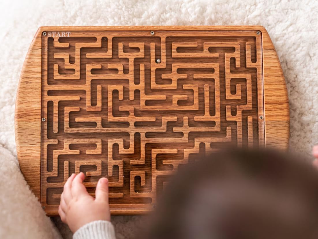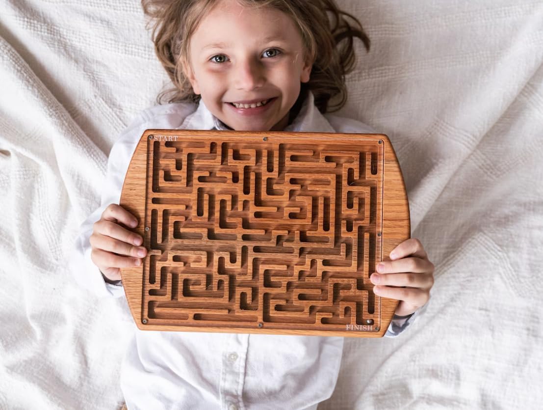 Bring the timeless charm of traditional play into the modern home with our Handcrafted Solid Red Oak Maze Game. This isn't just a toy; it is a meticulously designed sensory tool that bridges the gap between fun and developmental growth. Carved from high-grade, organic oak, each board features a unique labyrinth path that challenges the mind and soothes the senses. Measuring $12.75$ inches by $9$ inches, it is perfectly sized for tabletop play or as a portable companion for long journeys, ensuring children and adults alike remain engaged without the need for a screen.With Mother’s Day approaching, this maze board serves as a thoughtful "Mindfulness Gift." For the mother who prioritizes educational growth and organic materials, this game represents a commitment to quality and natural living. It is a fantastic gift for teachers, librarians, or any mom who manages a busy lobby or waiting room, providing a quiet and sophisticated entertainment option for visitors. The warm tones of the red oak, enhanced only by a food-safe mineral oil and beeswax finish, ensure that it complements any home decor style—from rustic farmhouse to modern minimalist.Safety and quality are at the forefront of this design. The internal metal marble is permanently secured beneath a high-clarity acrylic cover, preventing any choking hazards and making it a "grab-and-go" solution for busy parents. Whether used as a focus-building exercise in a classroom or a relaxing executive desk toy, the smooth, hand-sanded finish offers a premium tactile experience that plastic toys simply cannot replicate. Each piece is a one-of-a-kind treasure, celebrating the authentic variations in natural wood grain. Give a gift that inspires patience, concentration, and a love for natural craftsmanship this season.
