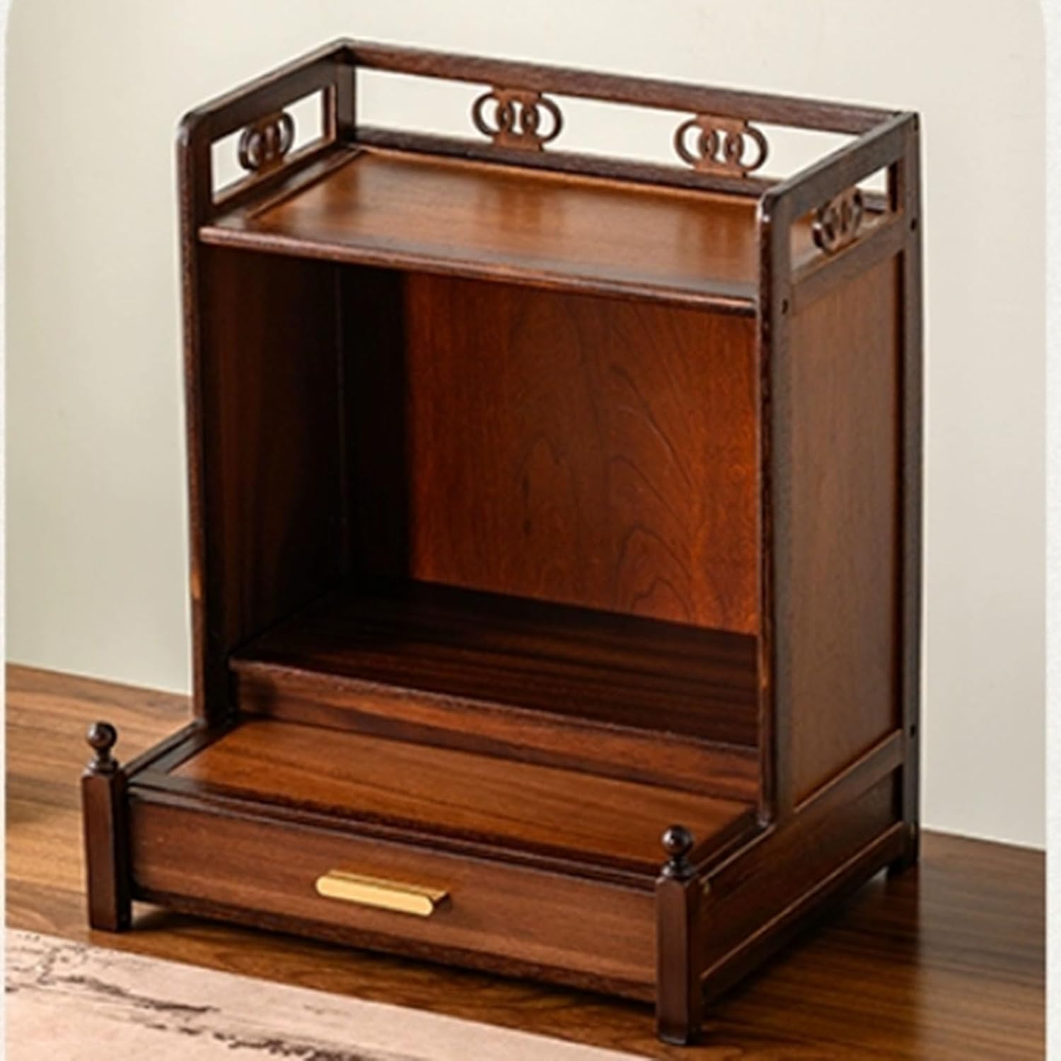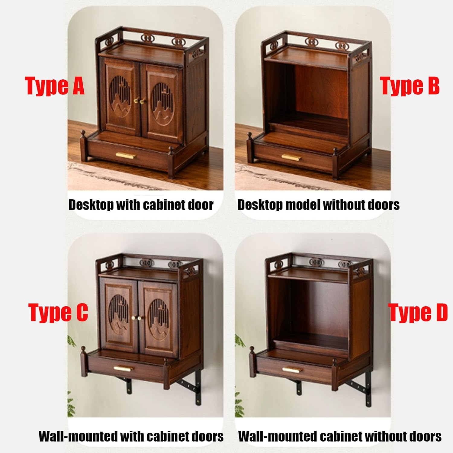 This solid wood altar serves as a beautiful and practical addition to any space, ideal for wall-mounted or tabletop use. Crafted from carefully selected walnut wood, it features a clear, eco-friendly grain and a finely polished finish for a smooth feel. The spacious top is suitable for accommodating incense burners, statues, and ornaments. The separate altar adds a touch of solemnity and includes drawers for convenient storage of items such as incense, candles, and bracelets. The design supports stable and secure use, making it perfect for home spiritual practices. Material: Wood Dimensions: Refer to the dimensional chart Package Includes: 1 solid wood altar Includes a detailed installation manual and straightforward assembly instructions. Notes: 1. Ensure the wall is secure or structurally sound before installation. 2. Slight discrepancies of 0-3 cm may occur due to manual measurement; please confirm dimensions prior to purchase. 3. Images are for reference only; other items are not included. 4. Colors may vary slightly due to monitor differences.