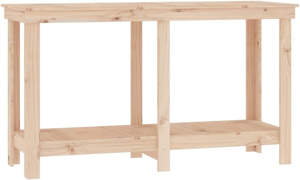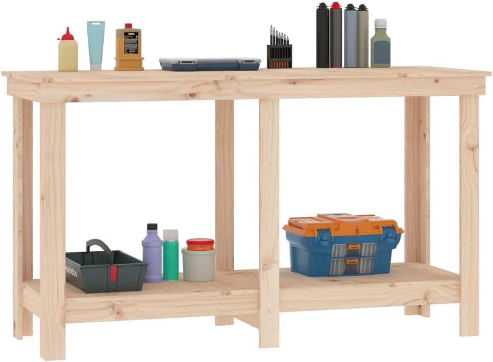 Upgrade your workshop with this versatile and durable solid wood workbench. Designed to meet the demands of both hobbyists and professionals, this table offers a solid foundation for all your manual tasks and repair projects.Constructed from high-quality untreated pine, this unit features a natural beauty with visible wood grains and knots, adding a rustic character to any workspace. The integrated storage shelves ensure your tools remain within reach, helping you maintain a clean and efficient environment.The sturdy frame design provides excellent stability, ensuring your work area remains secure during heavy-duty tasks. Whether you are performing wood crafting, home maintenance, or simple repairs, this reliable workbench is a practical and essential addition to your home.
