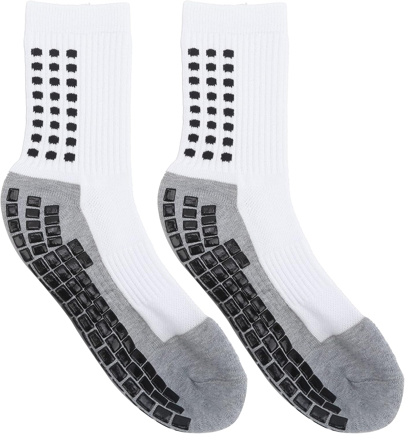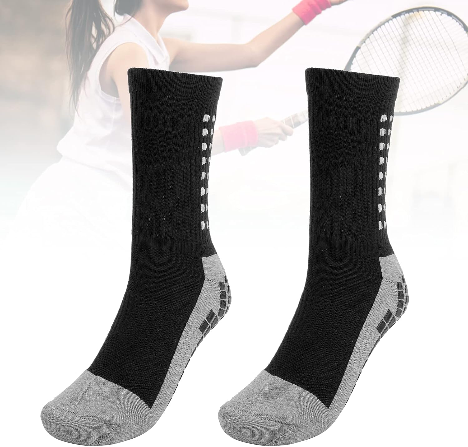 1. 360° three‑dimensional woven package, comfortable and shock absorption, provide better use feeling. 2. Rubber soles, better skid resistance, protect your safety in the process of sports. 3. Thread design, stretch top, good contraction, better protection of ankle and heel. 4. Porosity, beneficial odor discharge, keep feet breathable and comfortable, ensure the comfort during sports. 5. Made of polyurethane fiber material, firm and durable, provide longer service life. Spec: Item Type: Rubber Grip Socks Material: Polyurethane Fiber Weight: Approx. 93g/ 3.3oz packing list: 2 x Rubber Grip Socks