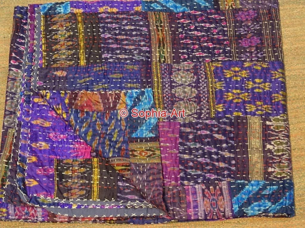 This Is Completely Hand Quilted Blanket Made From Cotton. A Feast For The Eyes From South Asia, This Delightful Piece Will Add Some Exotic Flair To Your Living Space. Even You Can Gift It To Your Relative And Any Family Member As Well. This A Example Of A Great Craftsmanship For Centuries In India And Bangladesh, Bengali Women Stitched Together Old Saris And Cloth Scraps To Form Blankets And Cushions. “Kantha” Is The Sanskrit Word For Rags, And Old Cloth Was Believed To Provide Protection From Harm. Authentic Kantha Throws Are Handmade And Will Vary In Size, Color, And Pattern. Our Kantha Quilts Are Made With 2 Layers Of Sari Cloth. The Final Product Is Still Thin, Not Bulky, But Definitely As "Hefty" As Kantha Come. They Are Light, But Provide A Good Warmth, As Well. A Simple Vintage Patchwork Quilt Design Of Soft Kantha Quilts. Each Quilt Is Carefully Hand Stitched With Care And Precision With Thousands Of Tiny Kantha Stitches. The 2 Layers Of Soft Kantha Embroidered Cotton Are Soft And Lightweight.To Make The Kantha Cloth, The Fabric Is First Cut To Shape And Layered To Achieve The Desired Size And Thickness. The Layers Are Spread Out On The Ground And Ironed. The Artisan Will First Stitch Some Large, Loose Basting Stitches Around The Edge Of The Fabric To Hold The Layers Together.