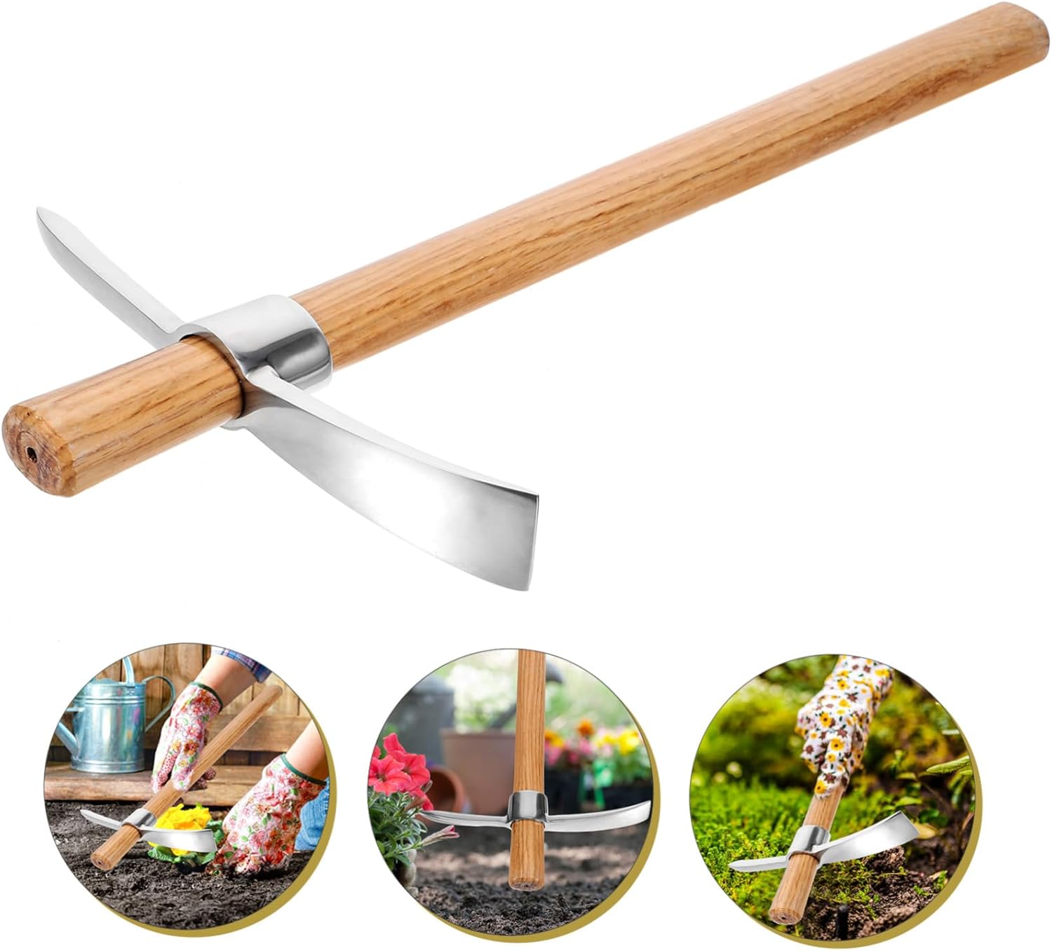 Package List 2 x gardening hoe Characteristics -Material:Wood,Stainless Steel digging machines -Size:40.00X24.00X3.20cm/15.72X9.43X1.26in gardening hoeing tool -Color:Assorted Color digging soil hoe -This garden hoe does not rust or deform. Easy to use and comfortable to hold gardening digging hoe. -Made of stainless steel and wood materials, our garden hoe is of good grade, high strength and planting hoe. -Ergonomic handle of this gardening hoe can reduce hand fatigue when digging garden supply. -A garden hoe is a good solution to the gardener's problem of digging the soil hand hoe. - gardening tool. This hand hoe is suitable for home planting, weeding, etc compact gardening hoe.Goods Descriptionvegetable farming hoe It is simple and and for gardens, nurseries, growing flowers, potted plants, etc.gardening digging hoe Our garden hoe is a good helper in gardening.scuffle hoe This is a great people who do of weeding or who enjoy gardening