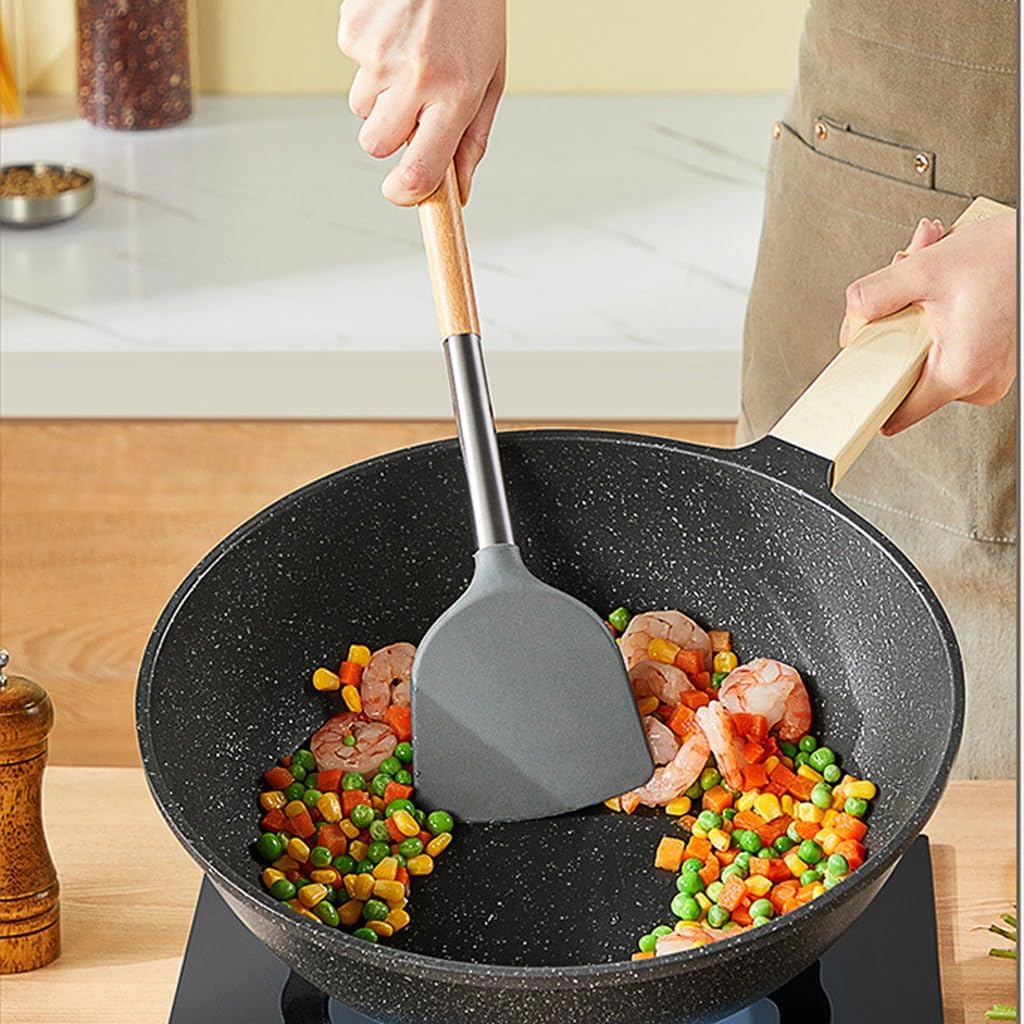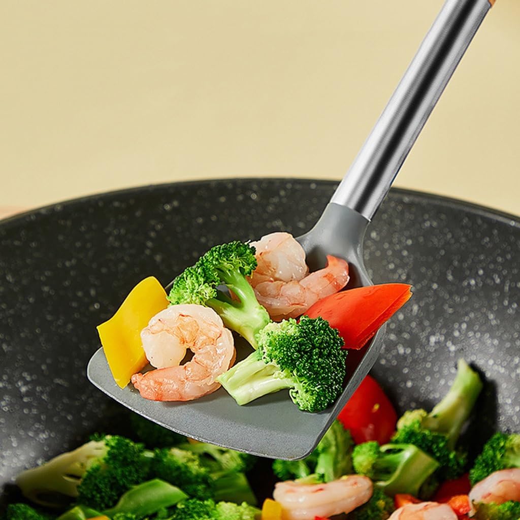 and easy to clean.Temperature resistance can resist temperature changes and cook at high temperatures.Integrated molding is easy to clean and does not easily hide dirt and dirt.The tail hanging hole facilitates storage without occupying space, making the kitchen cleaner and tidier.Silicone fully covers the pot without scratching the bottom, providing better protection for the pot.Name: Kitchenware SetMaterial: SiliconeColor: As shown in the pictureNumber of pieces: 2 piecesSpecification: Kitchenware set * 11. Due to screen display differences, there may be slight color differences in the visual. Please refer to the product received.2. Manual measurement may have slight errors, please understand.High temperature resistant material, can withstand high temperature use, and has no odor when cooking